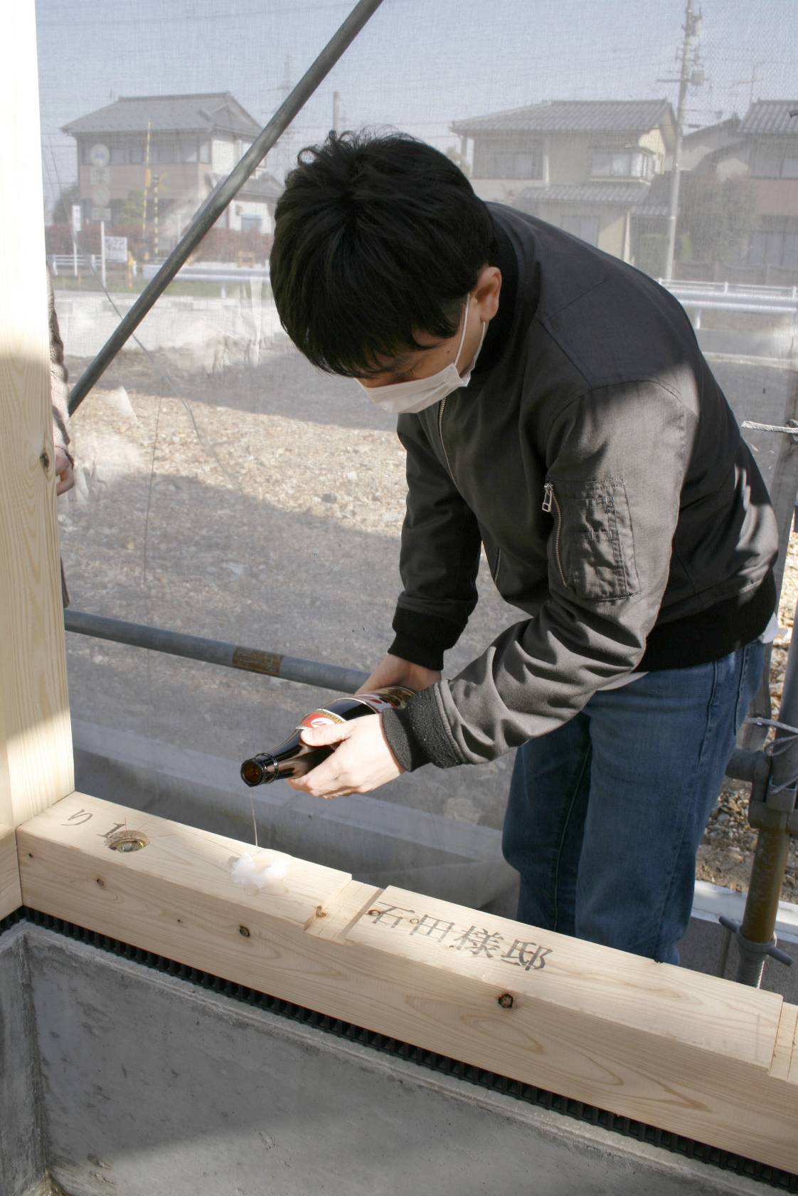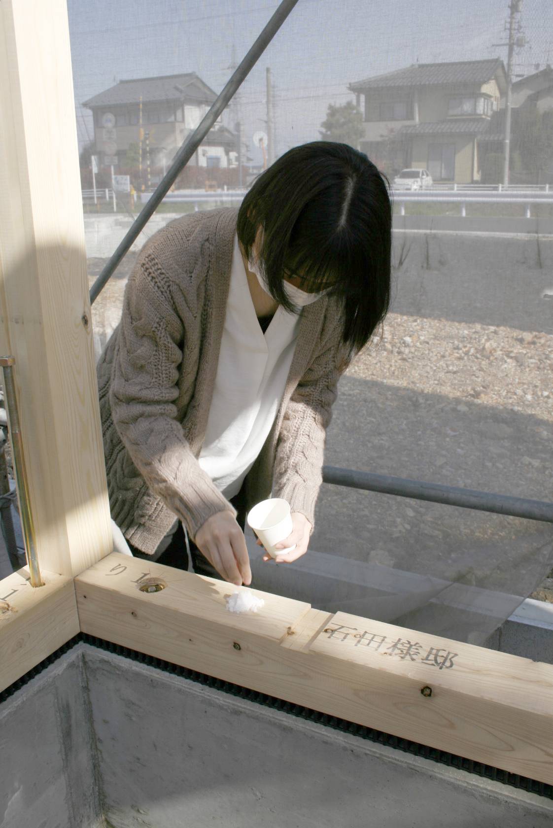 お施主さまには、建物の四隅に塩を盛り、お清めして頂きました。