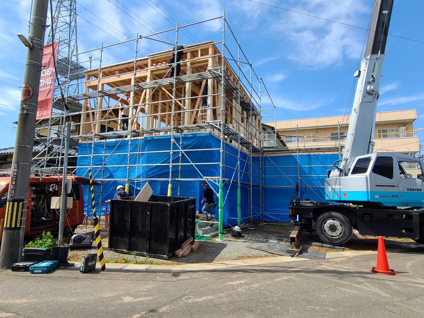 屋根が掛かるといよいよ建物のかたちが見えてきます。