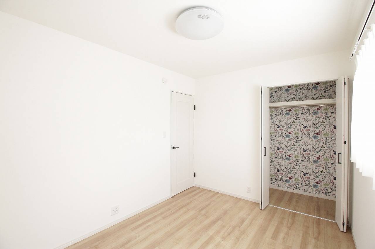クローゼットの中の壁紙が可愛い子供部屋。