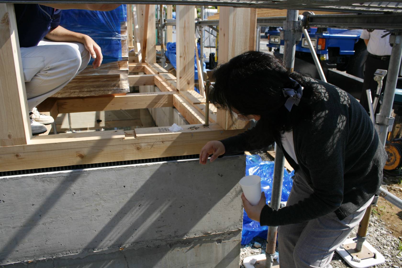 お施主さまには、建物の四隅に塩を盛り、お清めして頂きました。