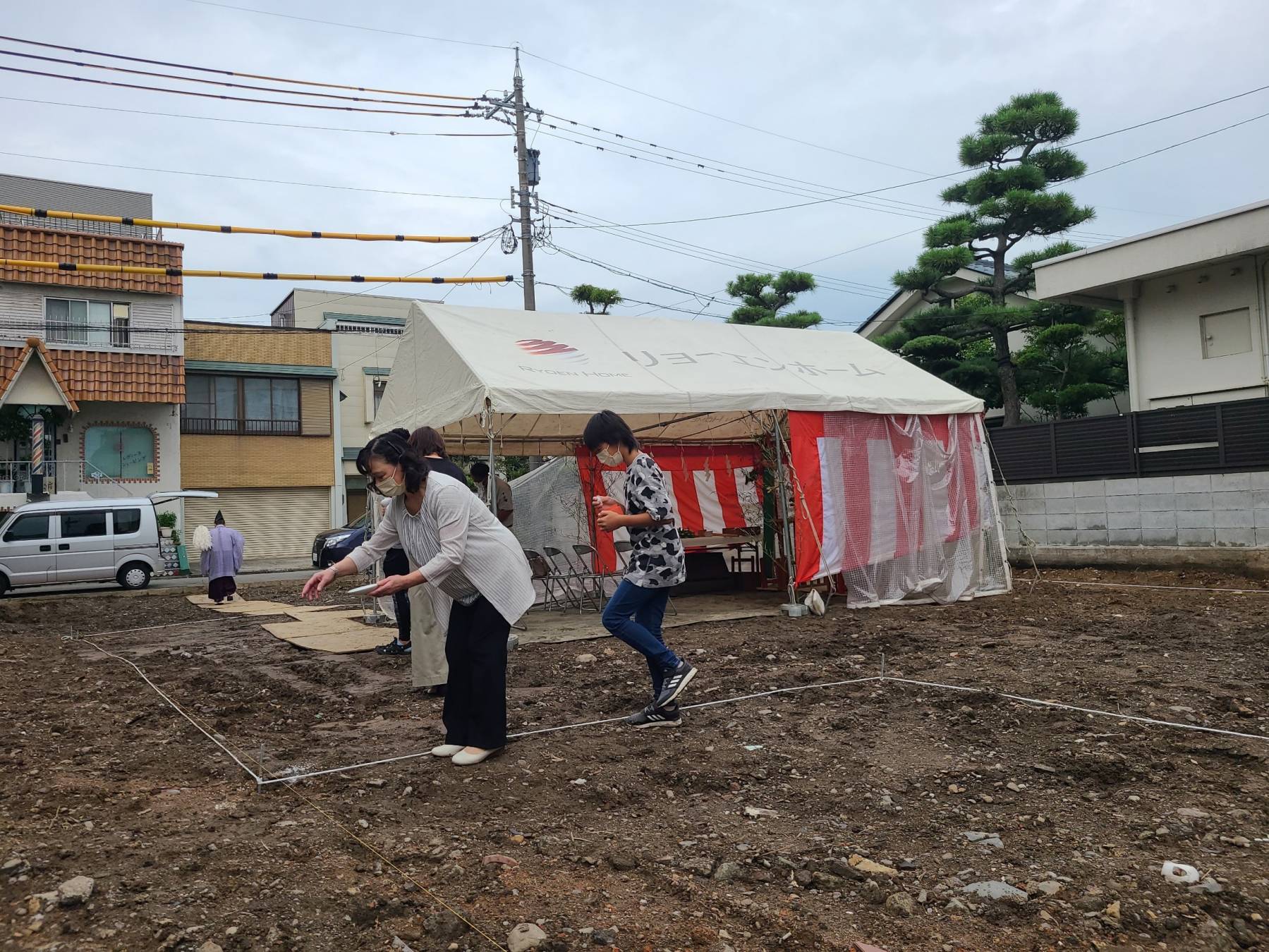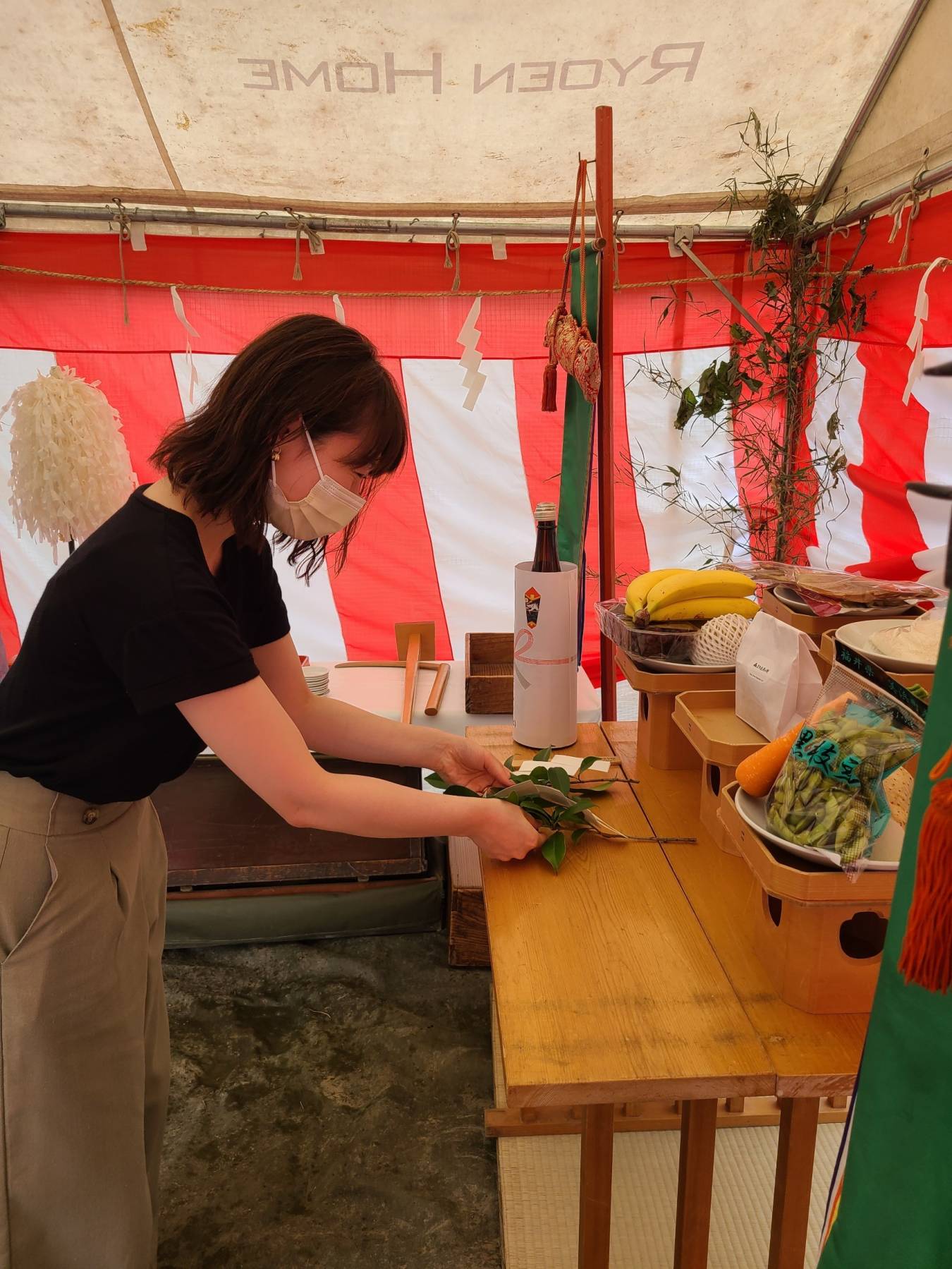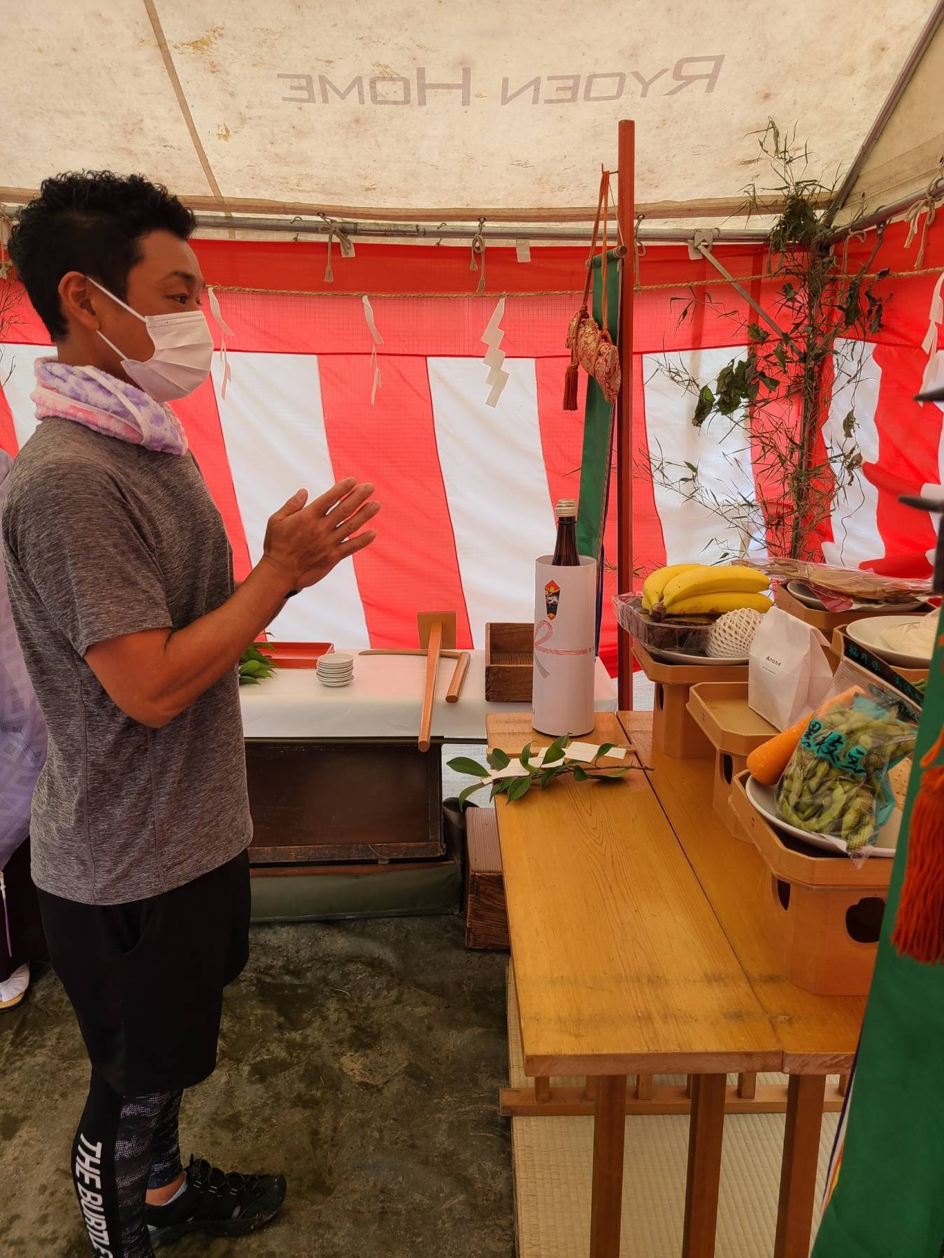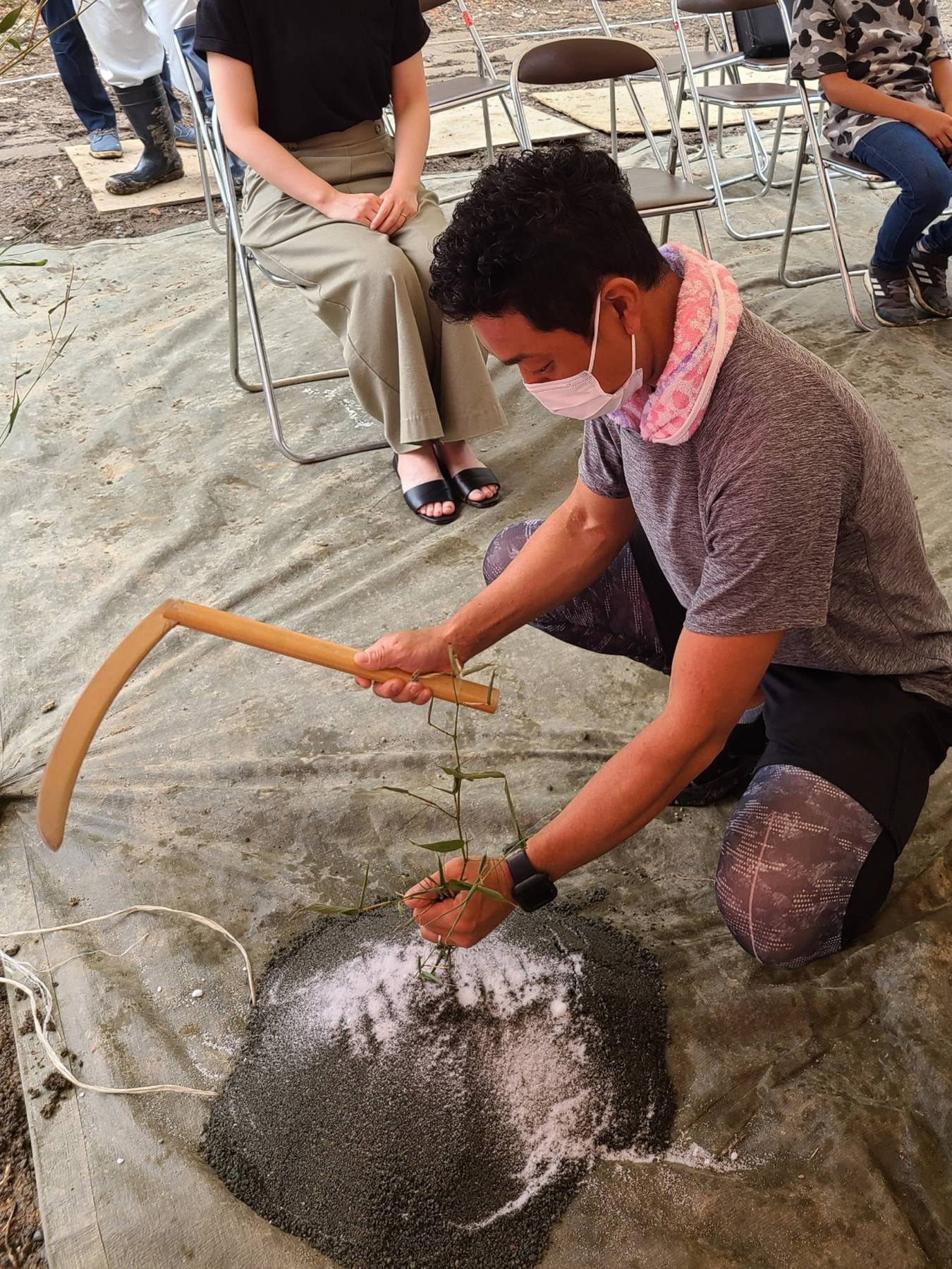 お清めが済むとテントに戻り、この土地に初めて手を入れる儀式をします。