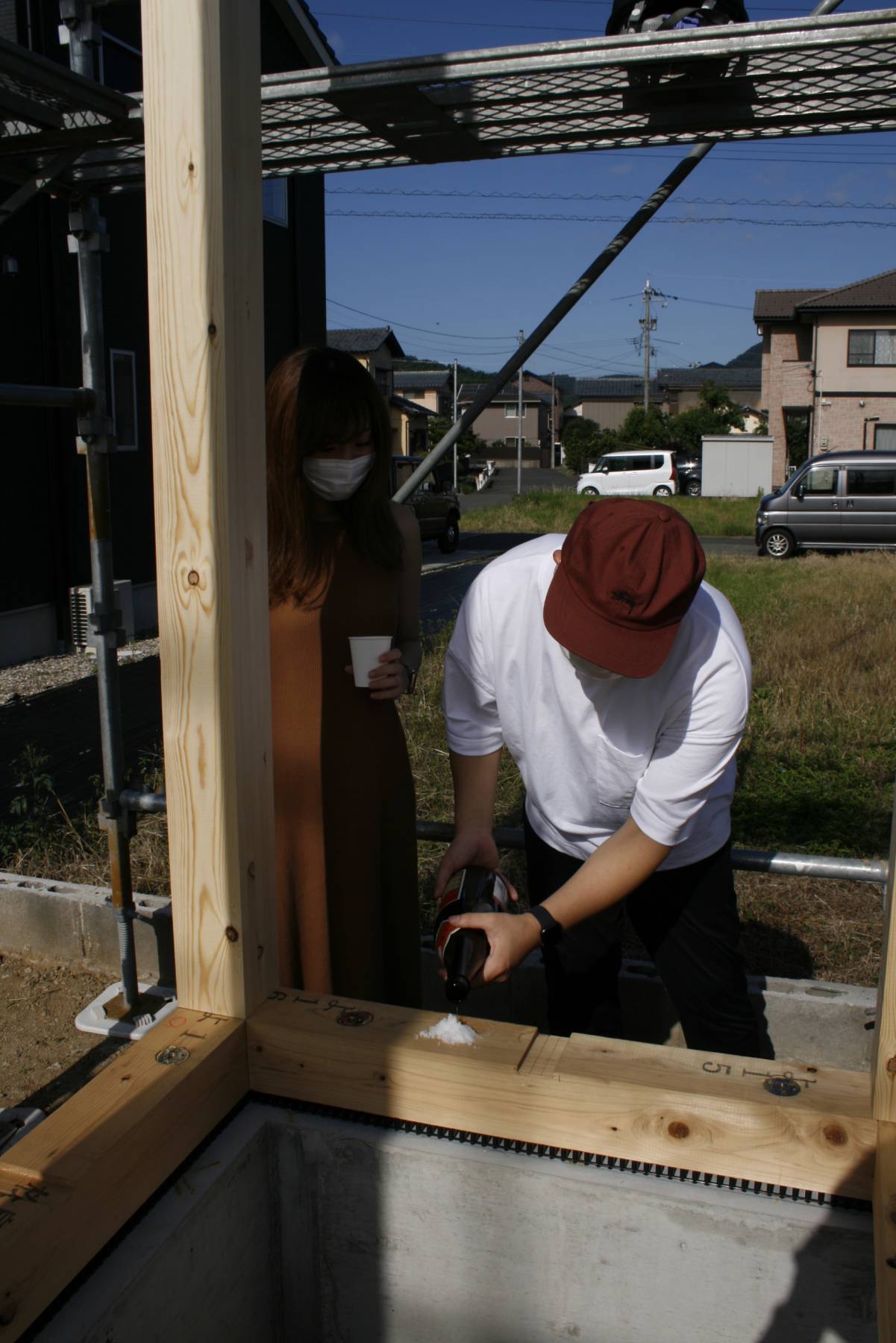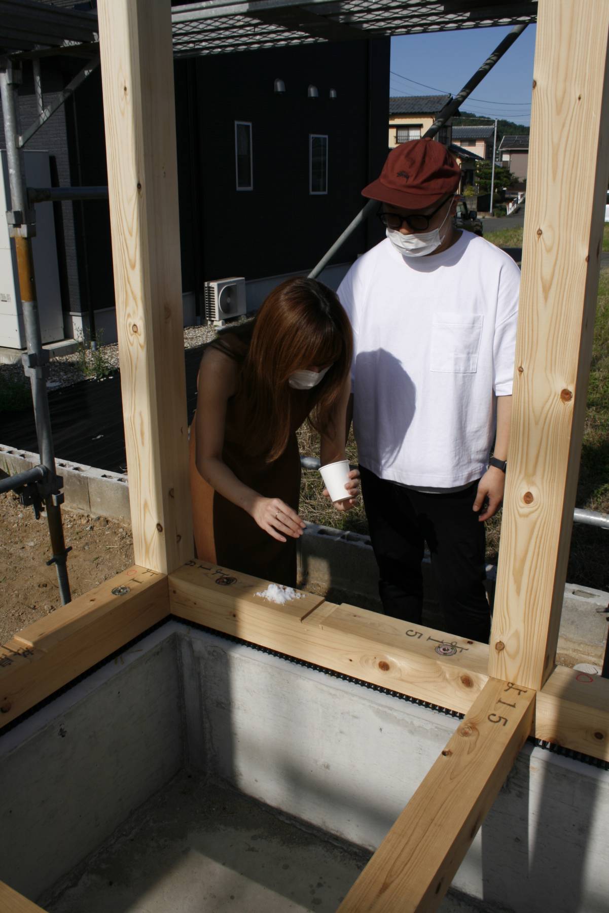 お施主さまには、建物の四隅に塩を盛り、お清めして頂きました。