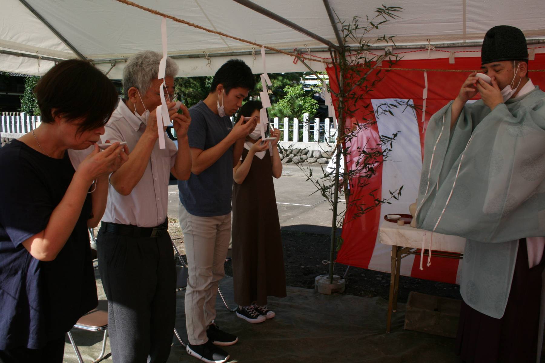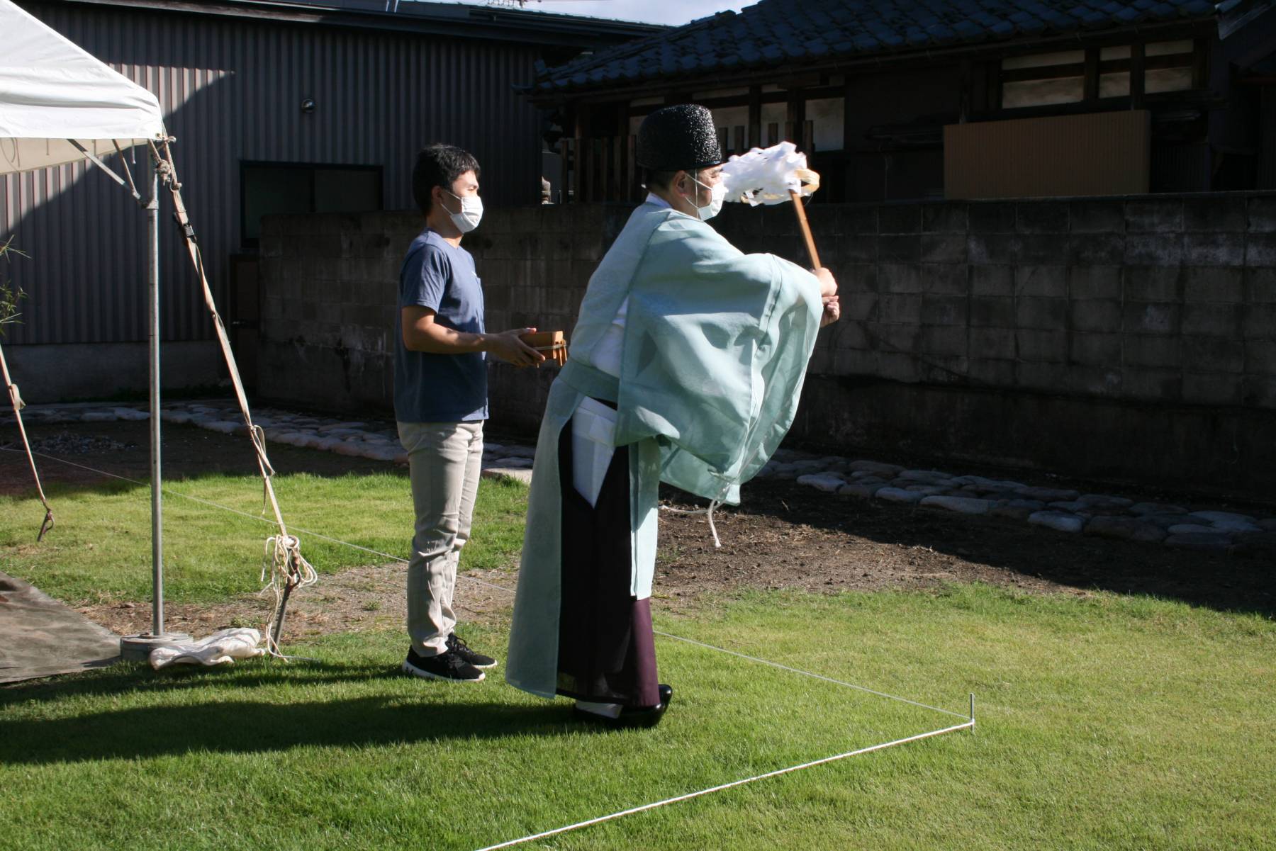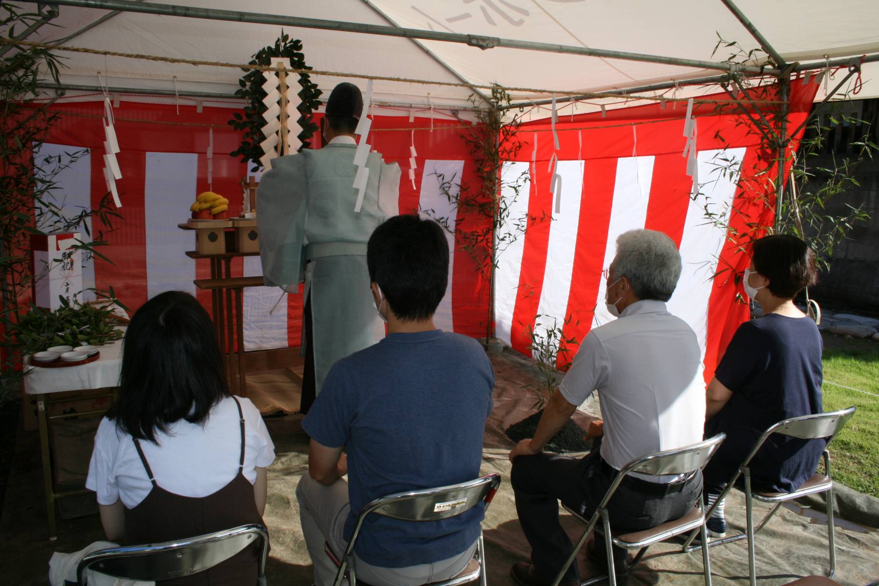 お清めが済むとテントに戻り、この土地に初めて手を入れる儀式をします。