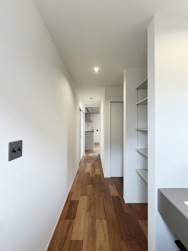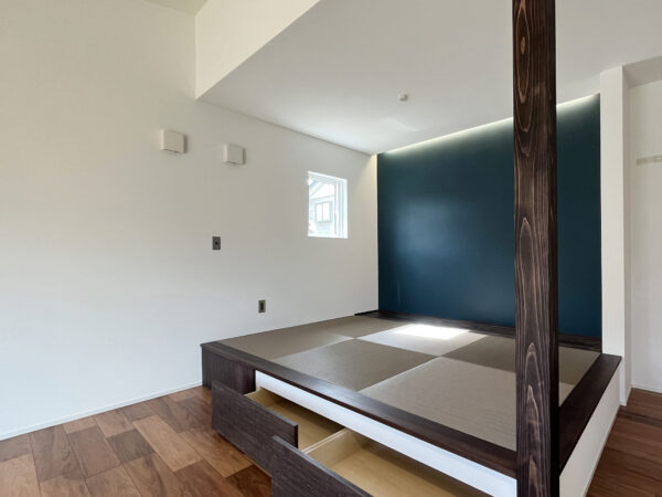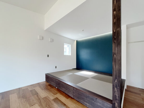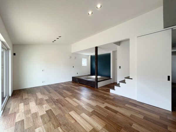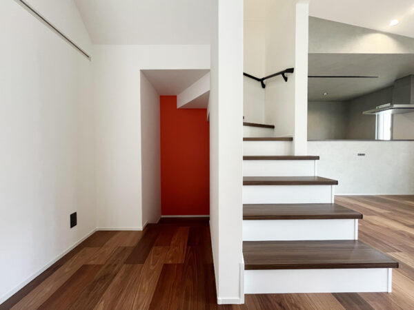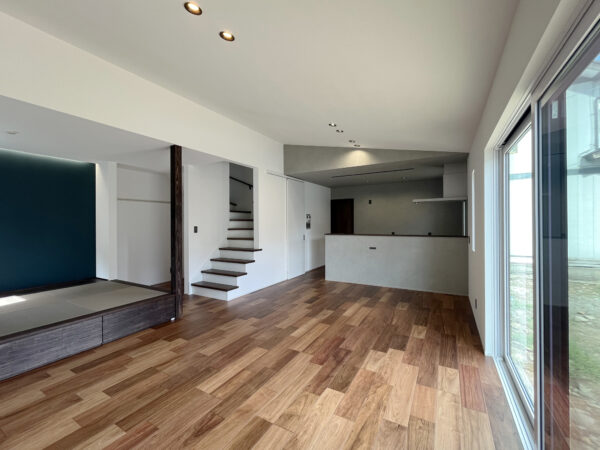 お引渡し完了しました(制震木造/大野市/H様邸) 2025/10/10 最終更新日時 : 2025/10/10 ryoen_admin 濃グレーの外壁に木目の玄関がアクセントになった外観です。 勾配天井とリビング階段で広がりを感じるLDK。 小上がりの畳スペースの下は引出収納。 階段下を利用したフリースペース。 一直線につながった使い勝手の良い水回りスペース。 施工面積 115.92㎡/35.06坪 4LDK
