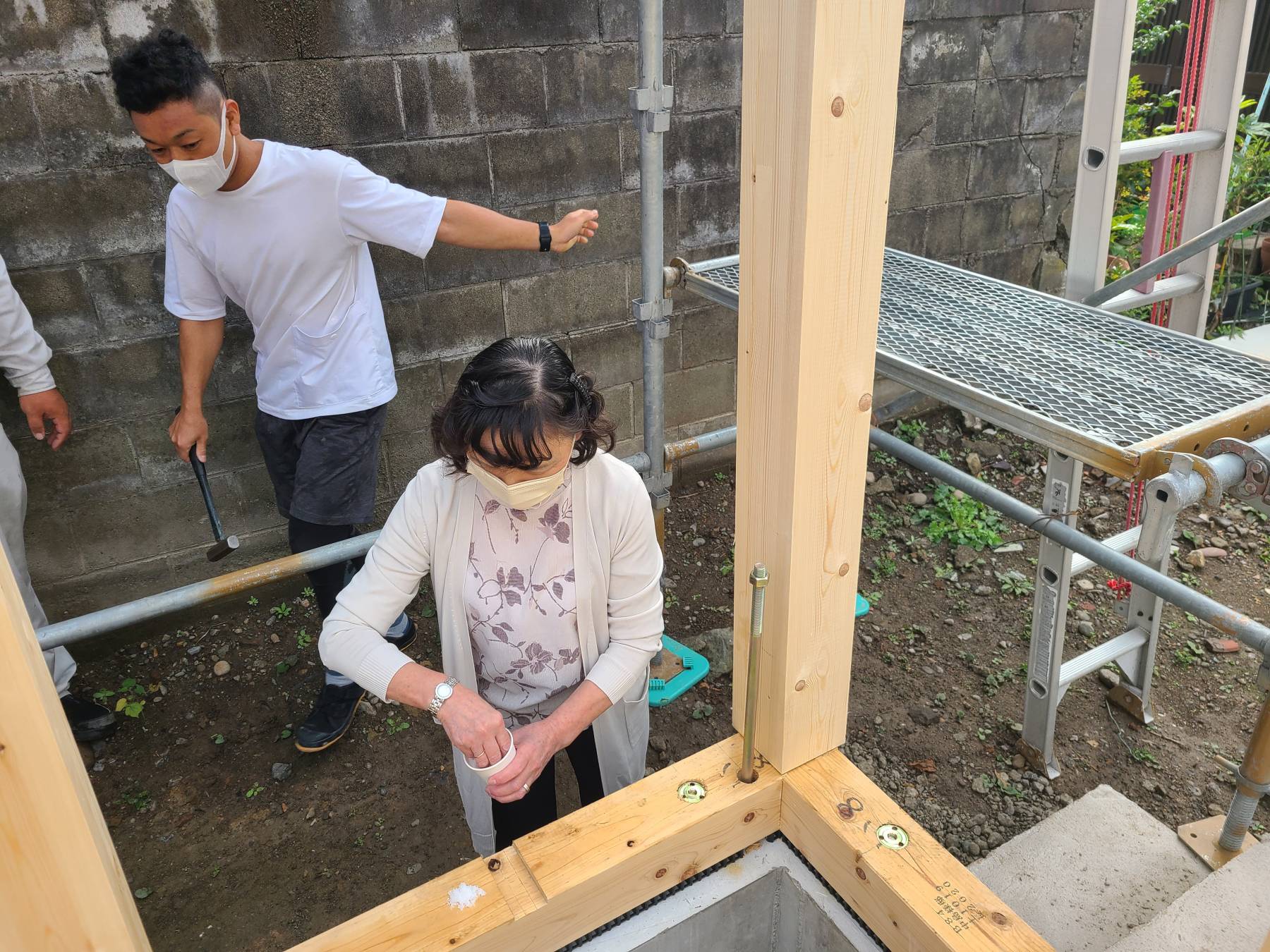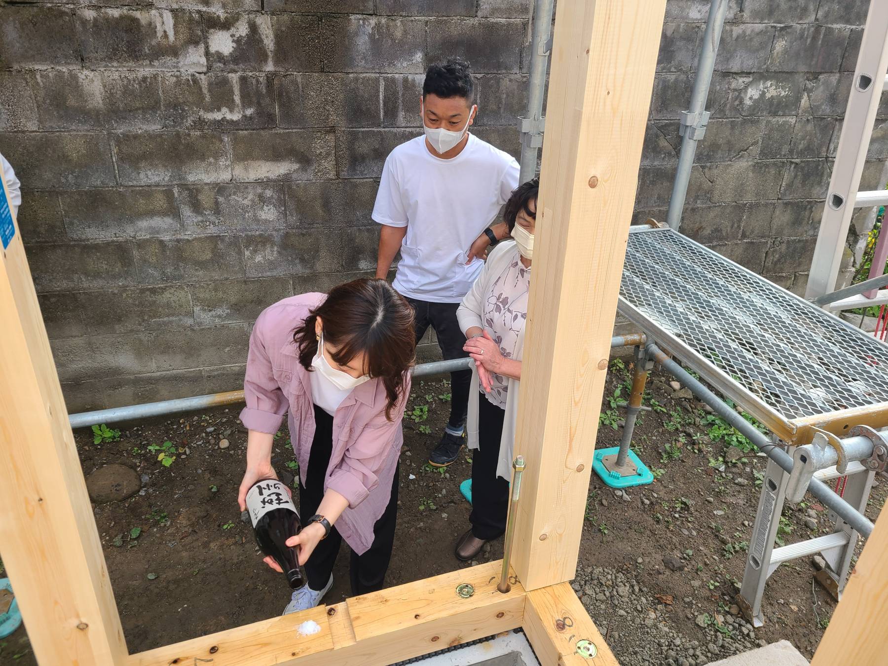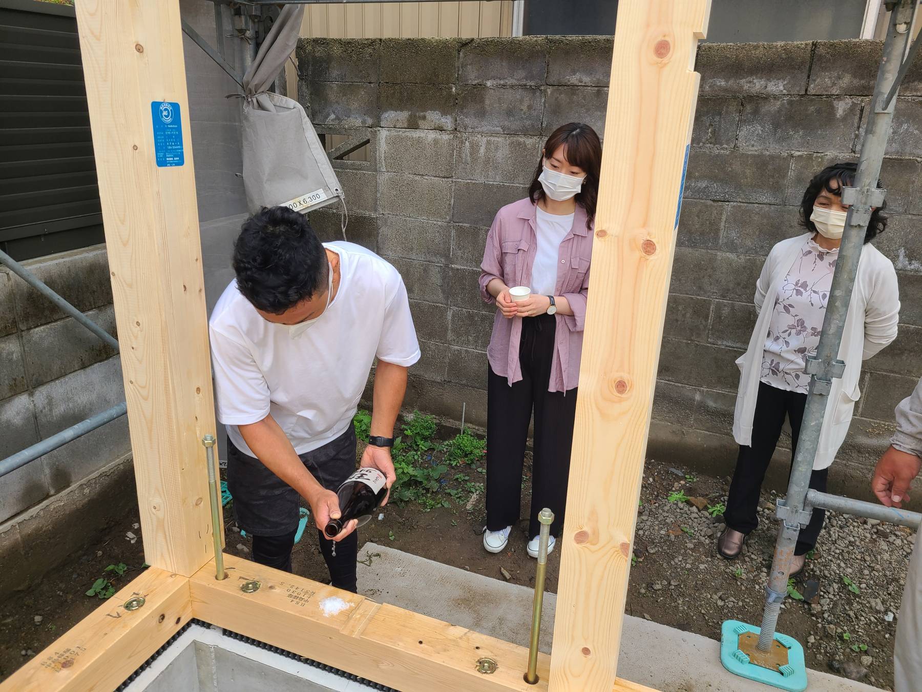 お施主さまには、建物の四隅に塩を盛り、お清めして頂きました。