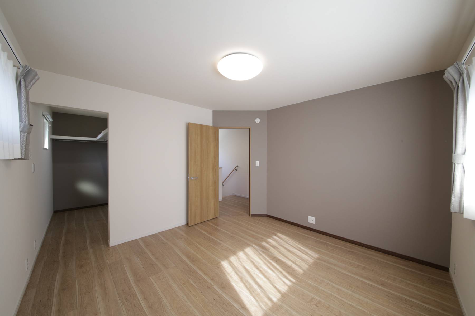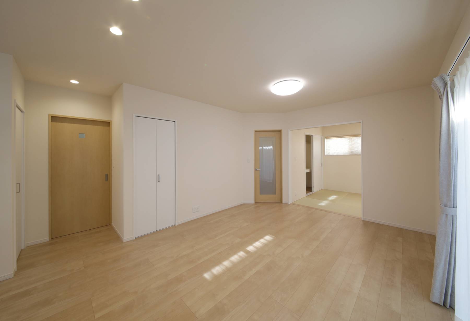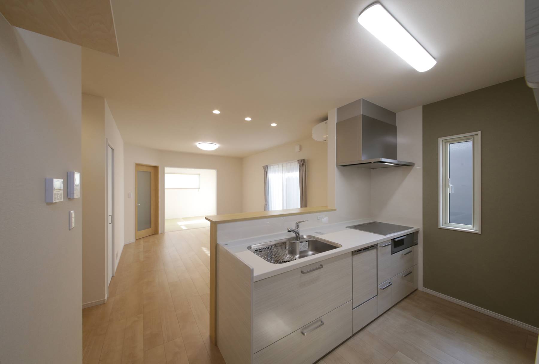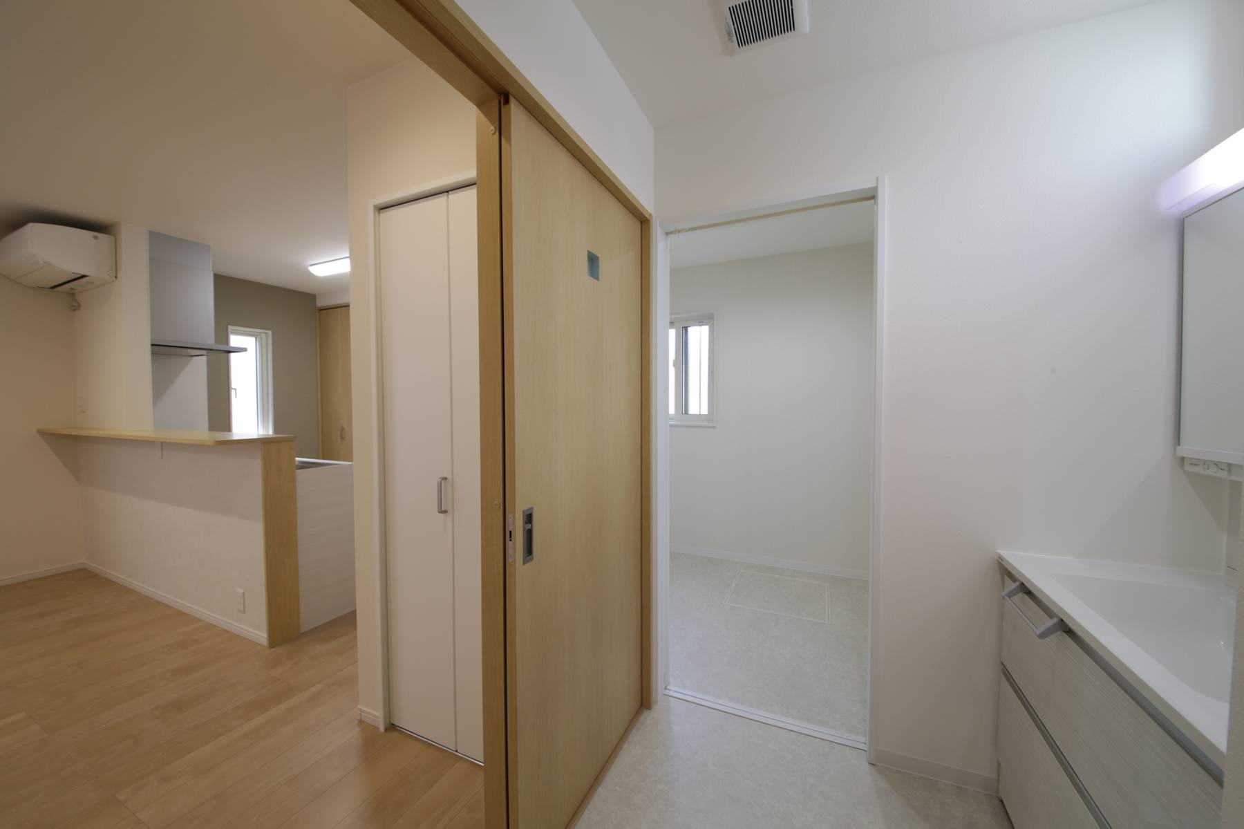 お引渡し完了しました(アフレール/あわら市/T様邸) ゆったり暮らす明るい住まい 2021/11/06 最終更新日時 : 2025/04/28 ミライスタイルライター ゆったり暮らす明るい住まい 広々とした土間スペース、土間収納があり使いやすい玄関。 リビングには和室が隣接し、ご家族が寛ぐゆったりしたスペース。 キッチン横には、洗面・バスルーム・サンルームなどの水回りを配置し、家事楽動線を確保。 シックな色合いのクロスがオシャレな寝室。広々としたウォークインクローゼットがあります。 施工面積 111.78㎡/33.81坪 アフレール