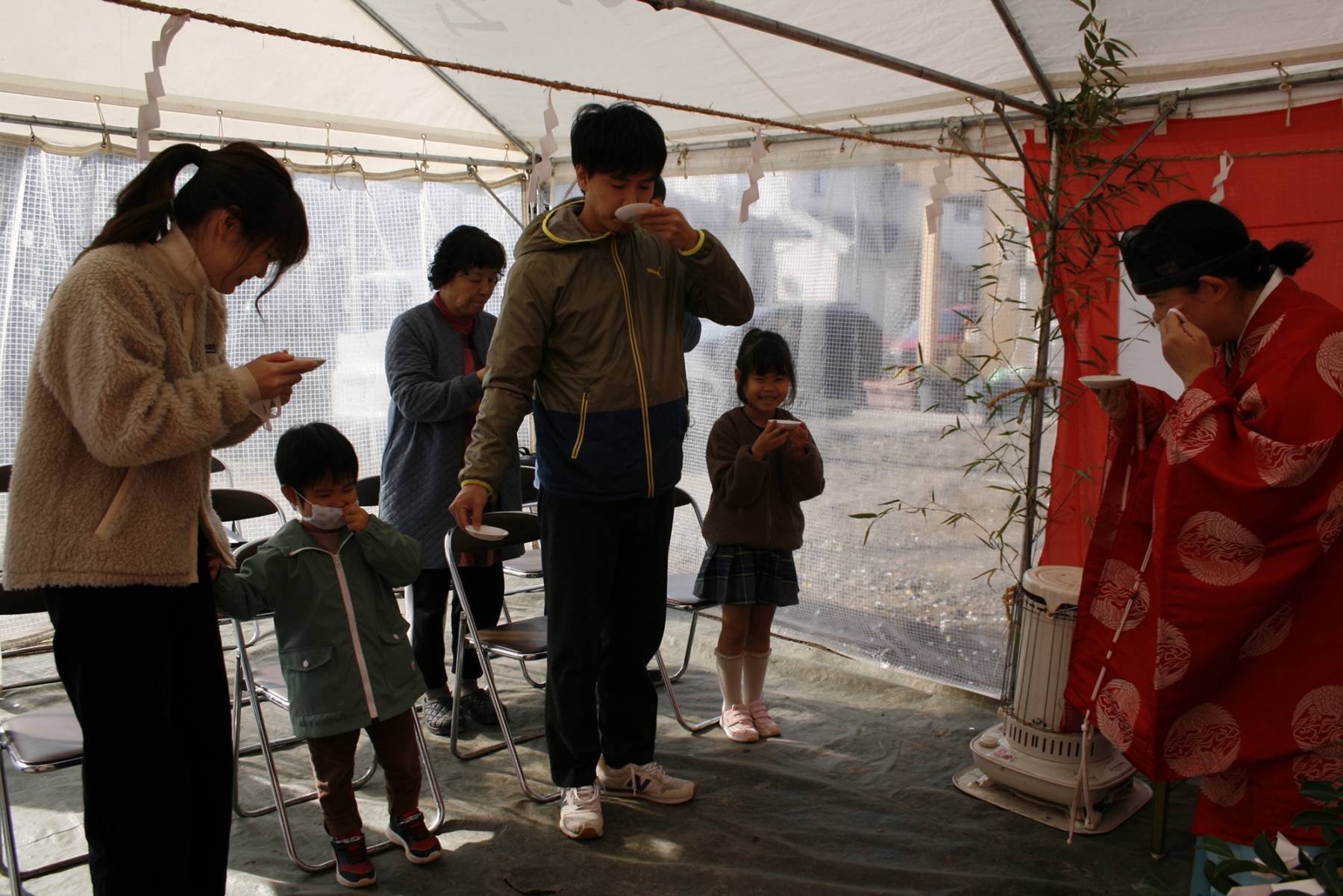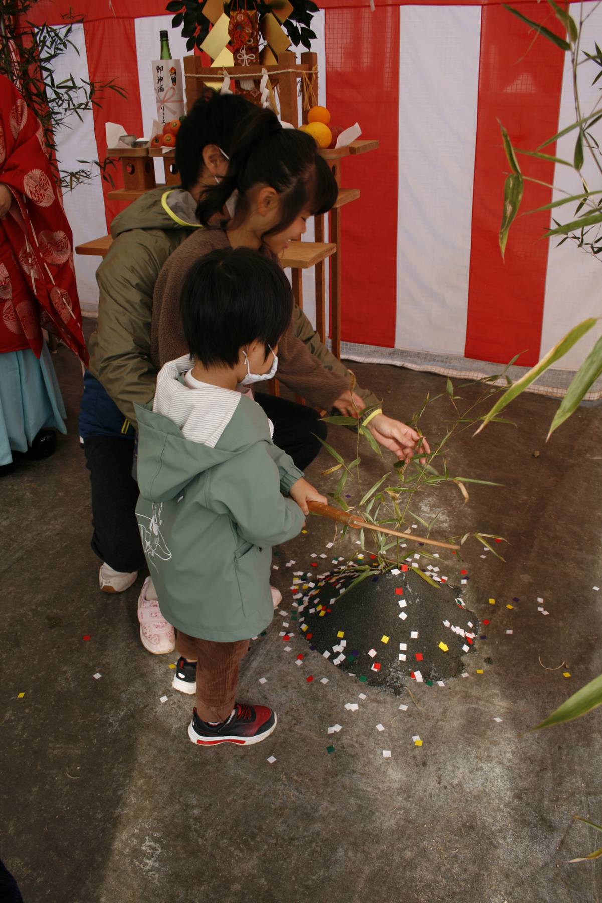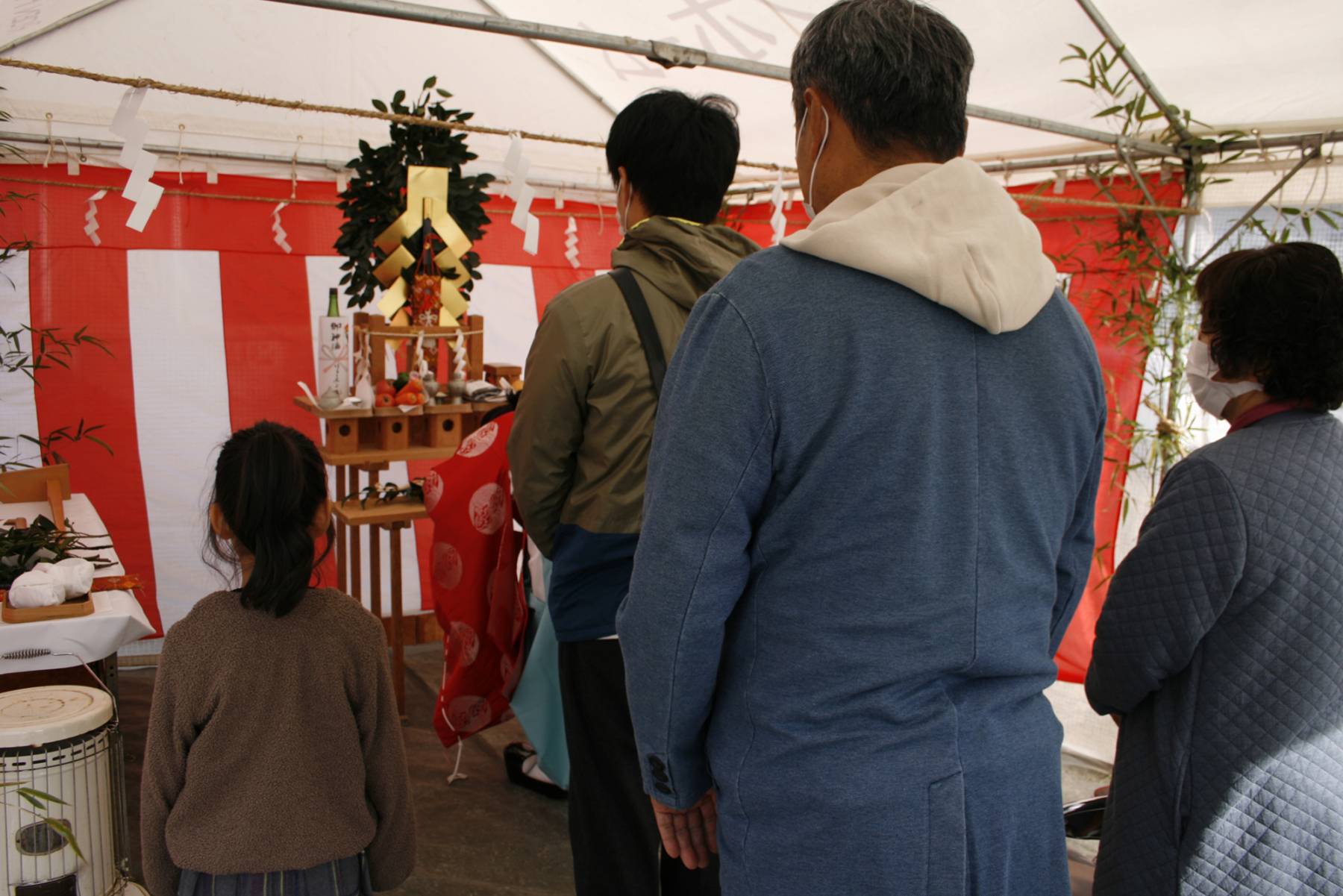 お清めが済むとテントに戻り、この土地に初めて手を入れる儀式をします。