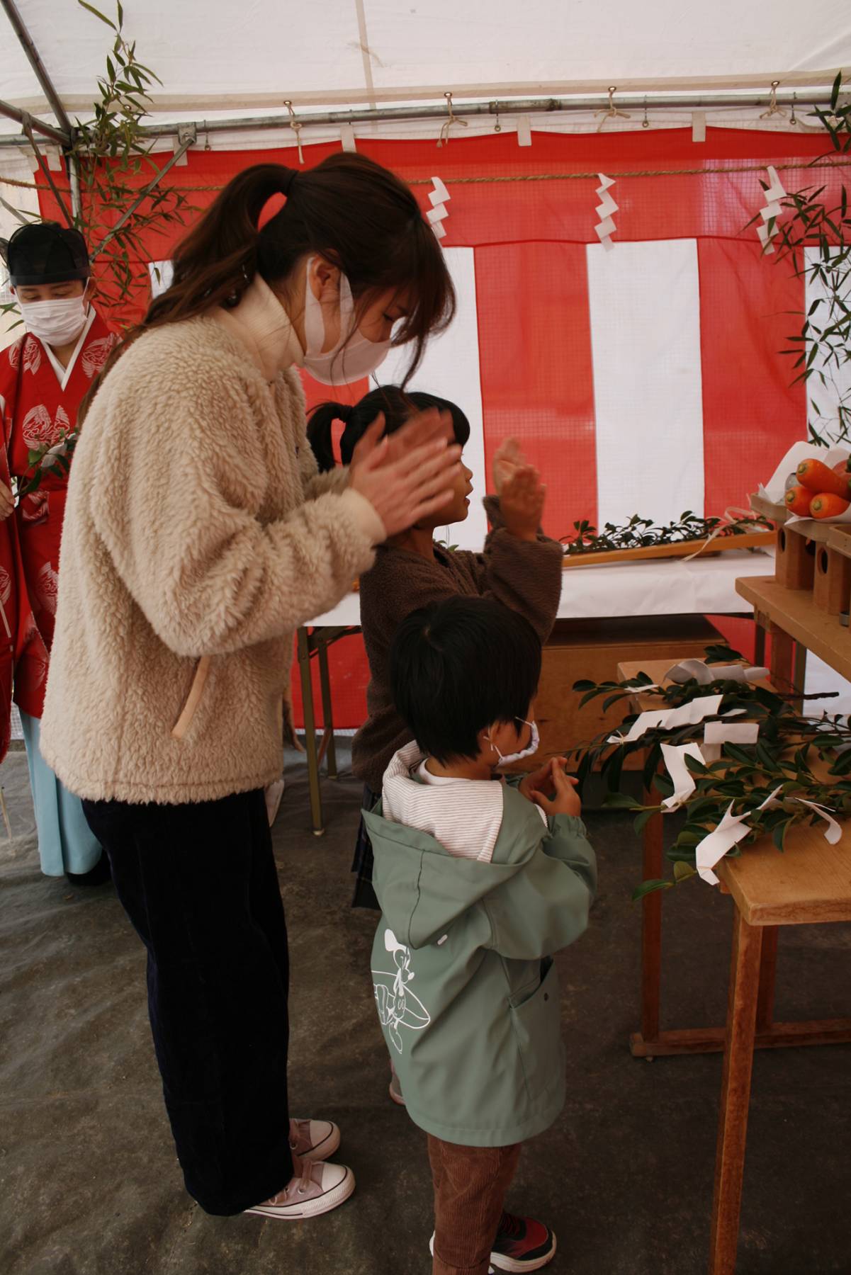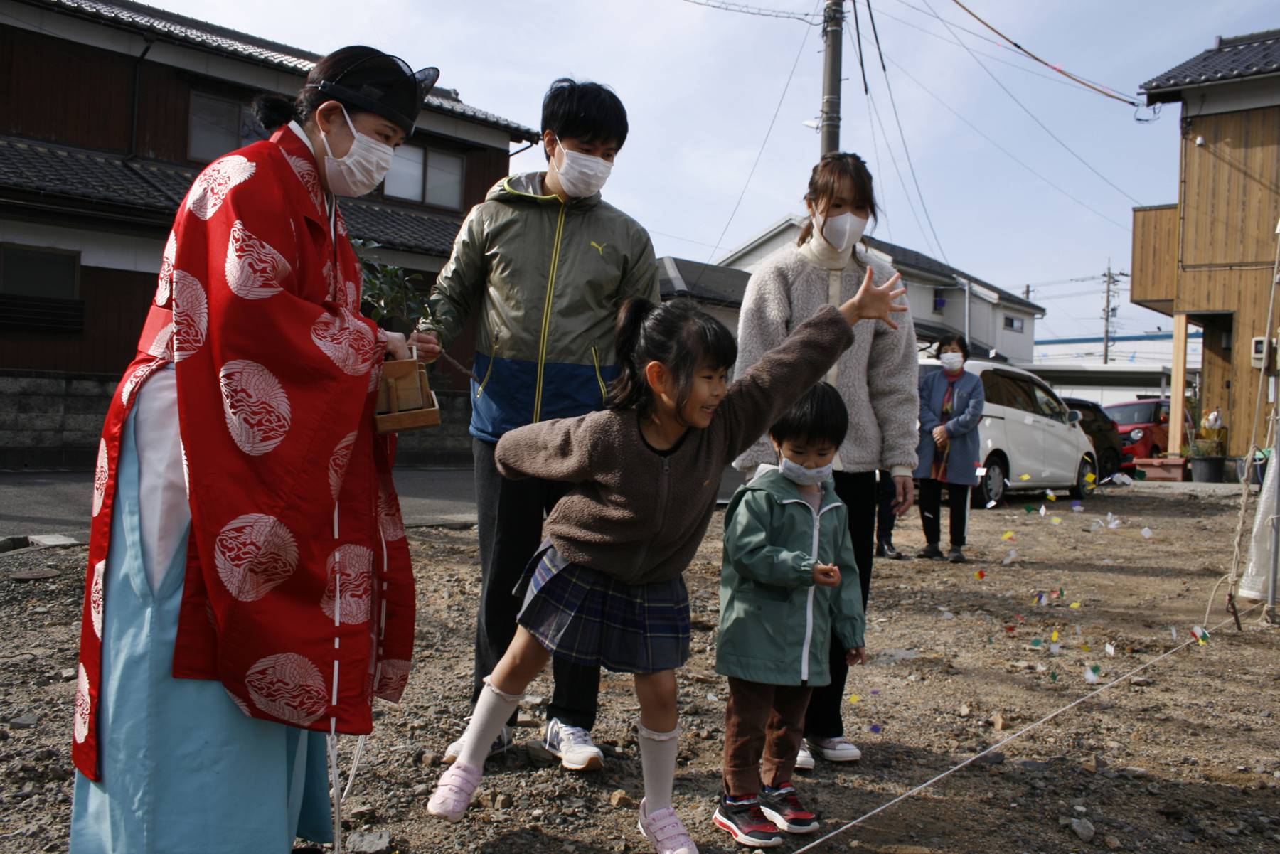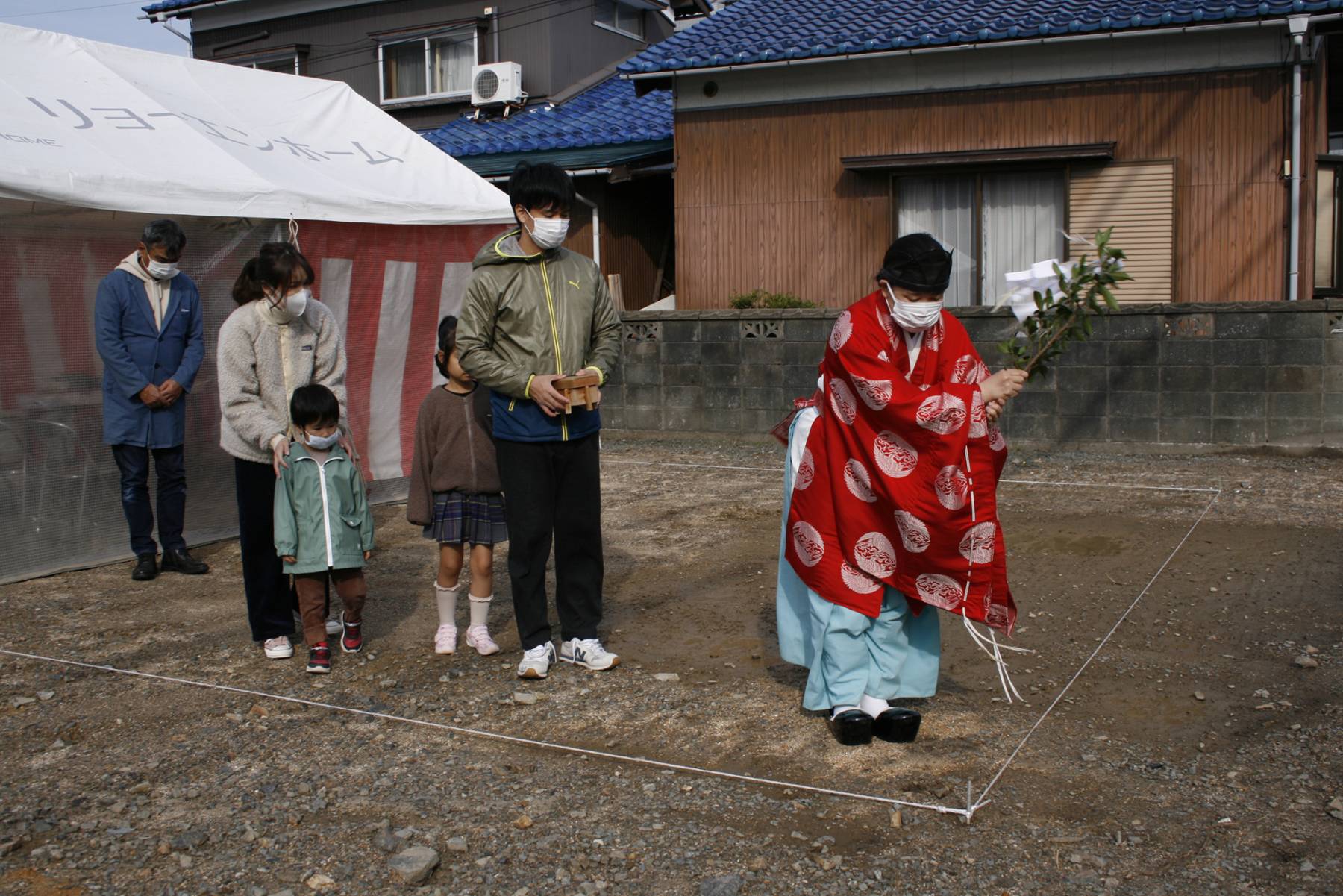 お清めが済むとテントに戻り、この土地に初めて手を入れる儀式をします。