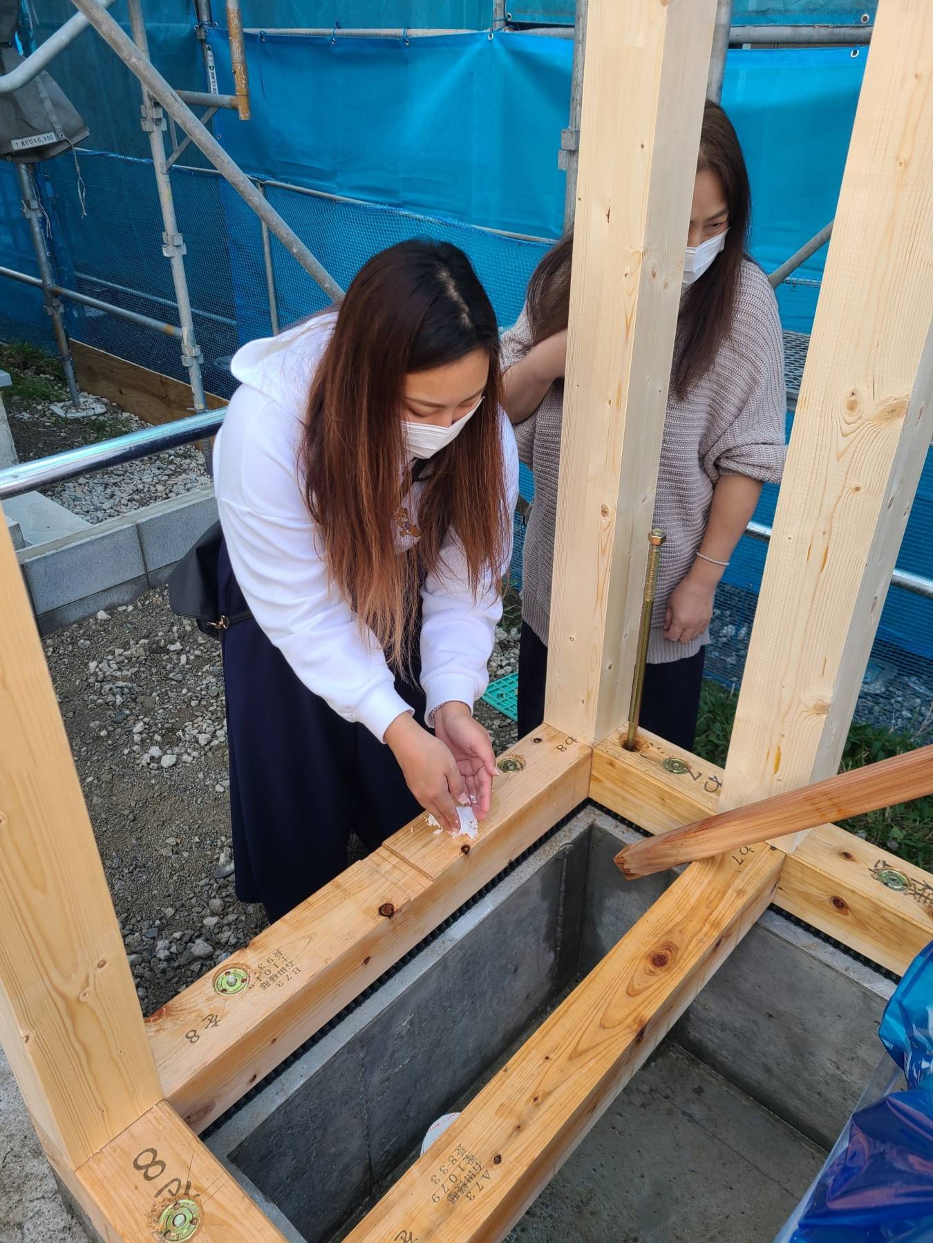 お施主さまには、建物の四隅に塩を盛り、お清めして頂きました。
