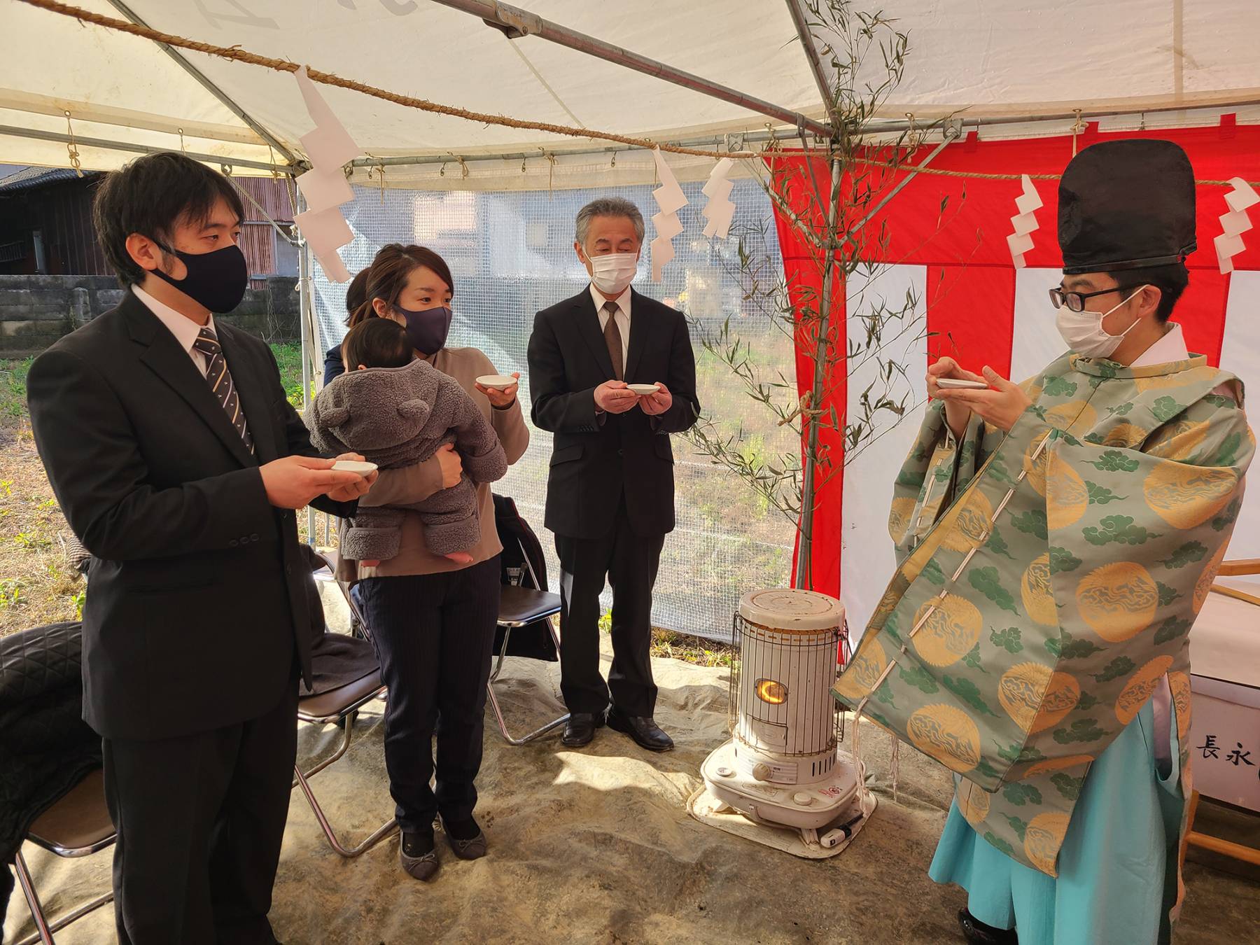 最後に皆さんでお神酒を頂き、地鎮祭の儀式が滞りなく終了しました。