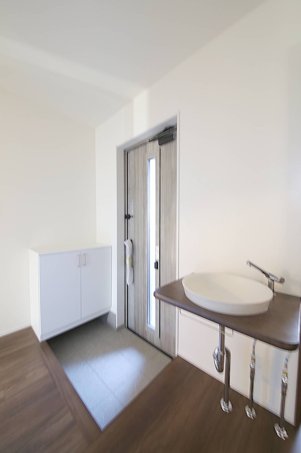 親世帯の玄関には帰宅時にも便利な手洗いスペース。