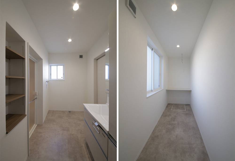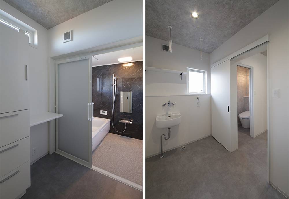 親世帯は1Fに、子世帯は2Fにバス・洗面・サンルームを配置。程よい距離を保ちながら、生活することが出来ます。