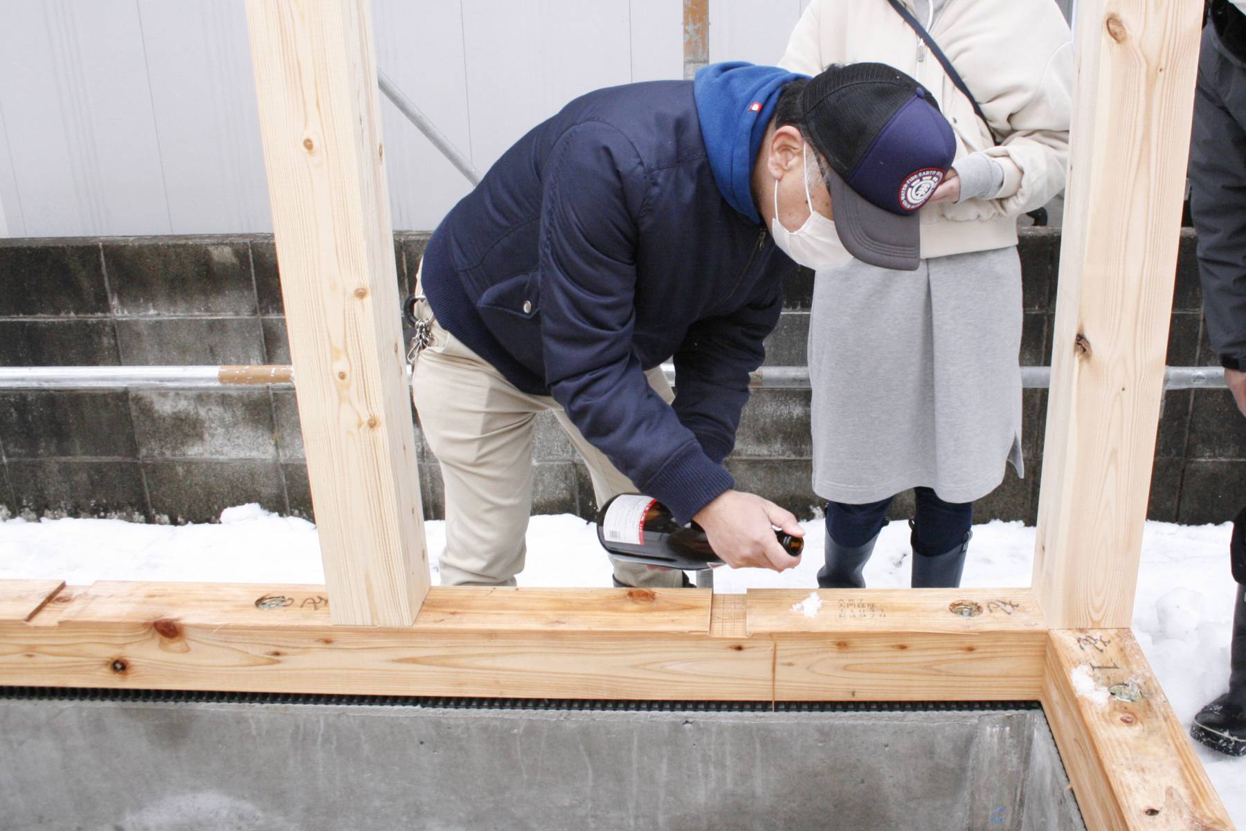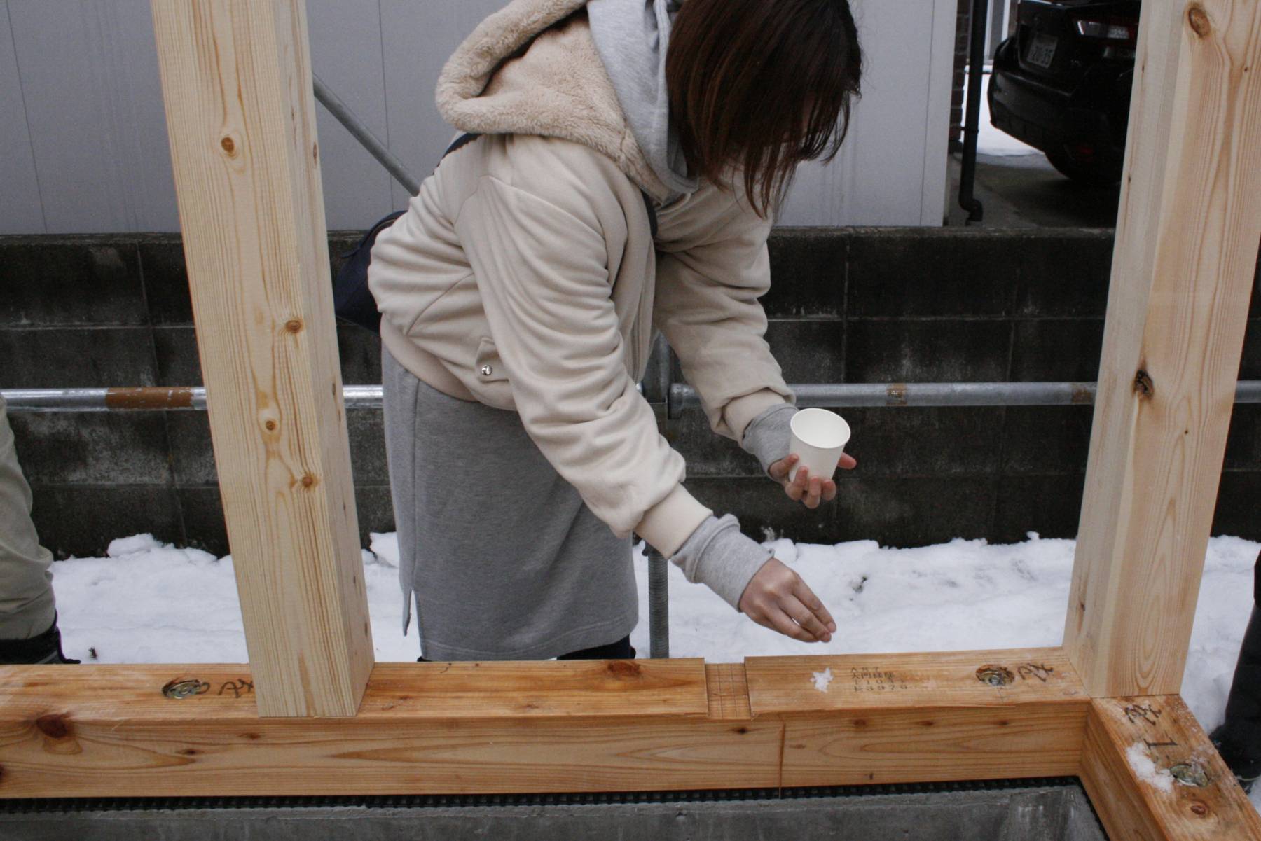 お施主さまには、建物の四隅に塩を盛り、お清めして頂きました。