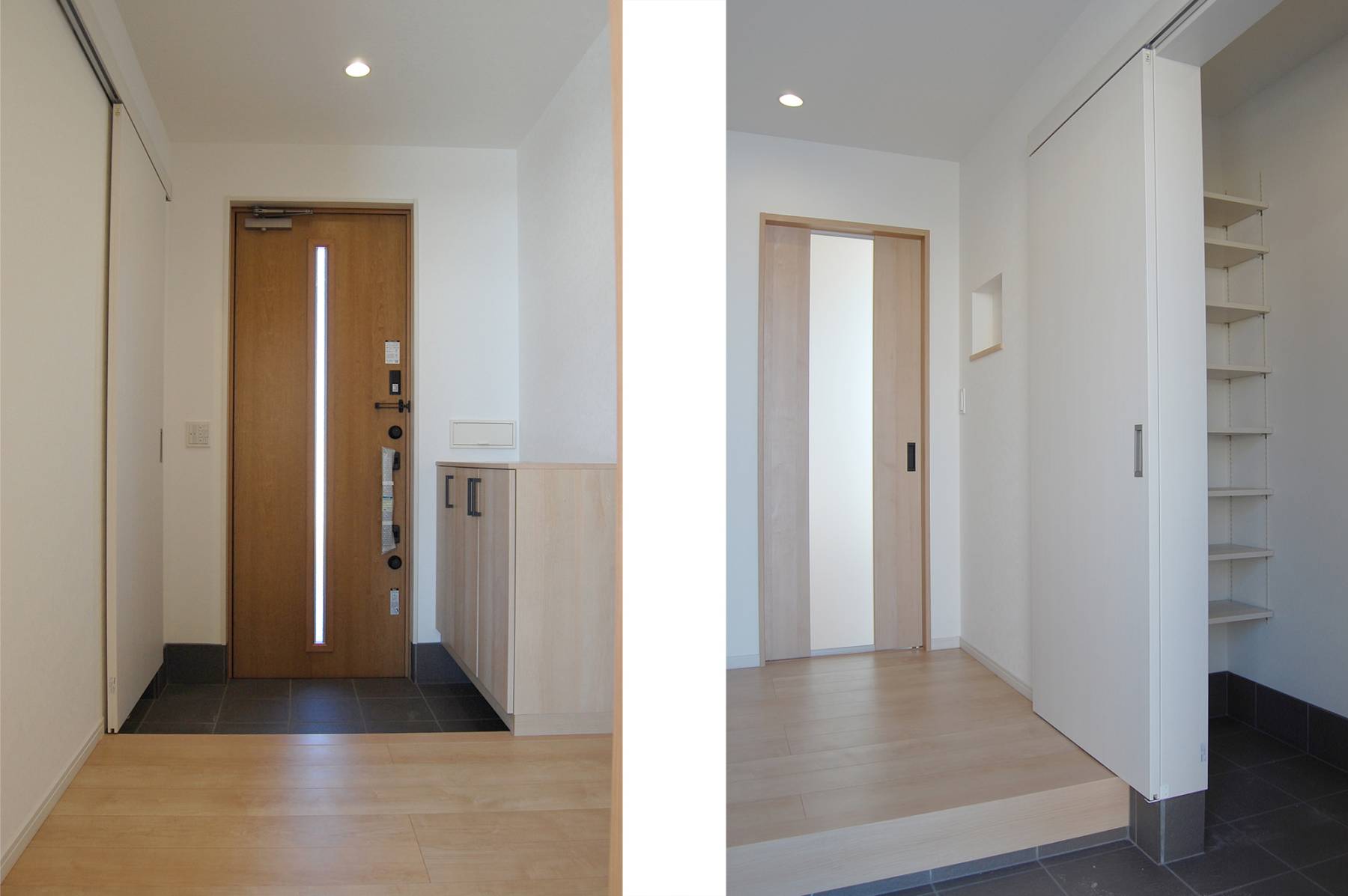 玄関にはお客さまには見せないようにできるシューズクロークがあり、ご家族の靴の他にアウトドア用品などの収納にも便利です。