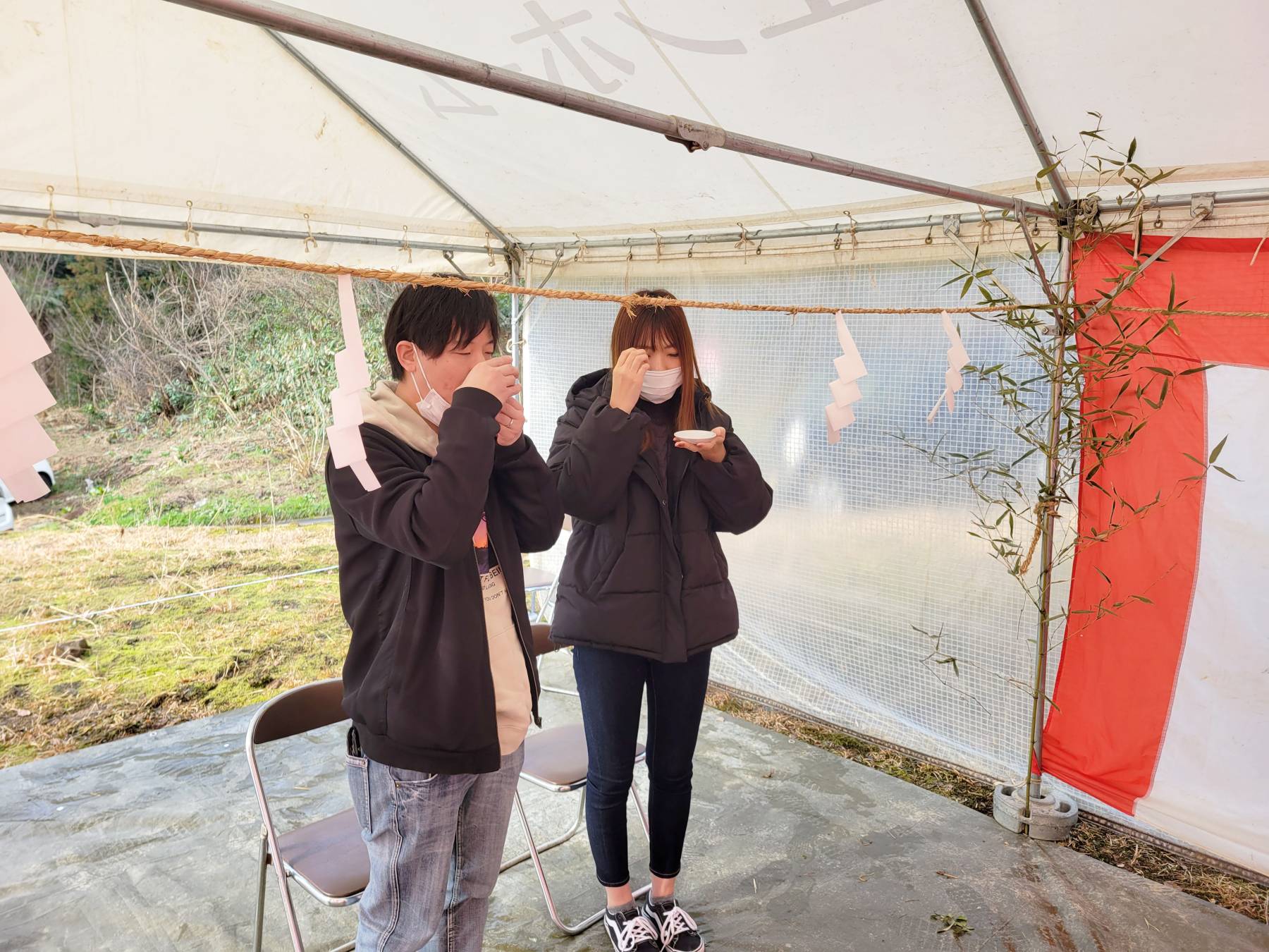 最後に皆さんでお神酒を頂き、地鎮祭の儀式が滞りなく終了しました。