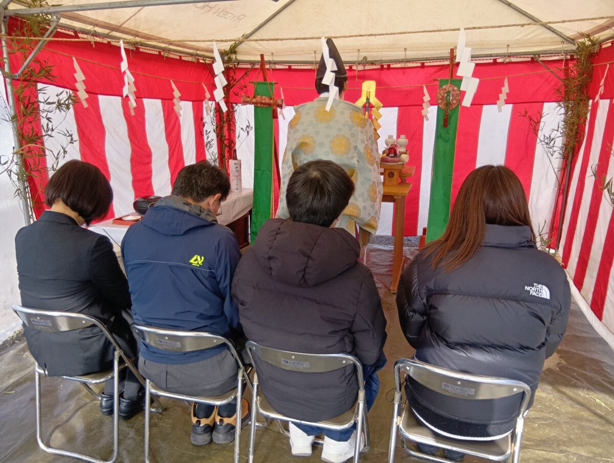 ご家族そろって参加していただきまして、土地の神様にご挨拶をし、これからはじまる家づくりの安全とご家族の末永い幸せを祈願いたしました。
