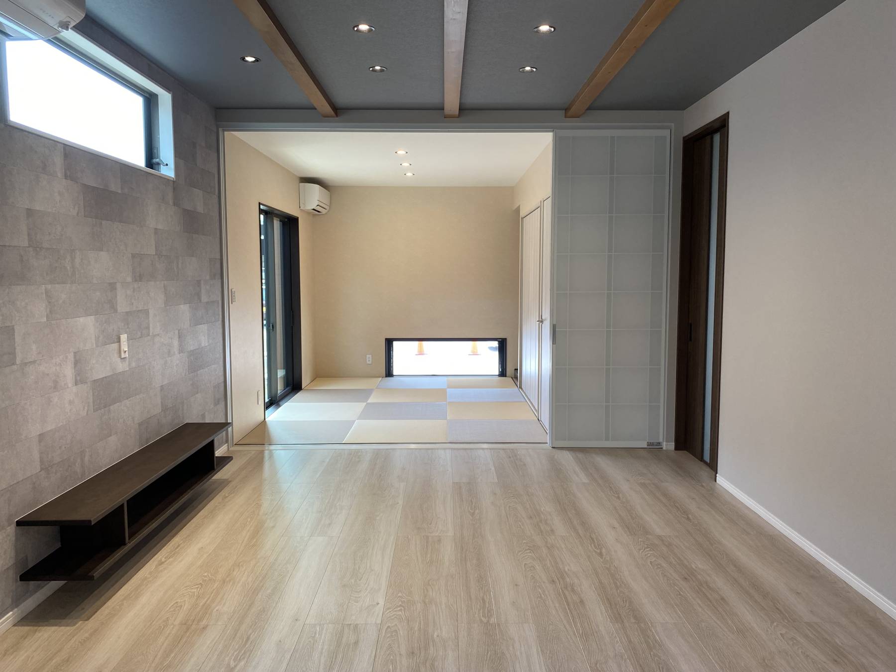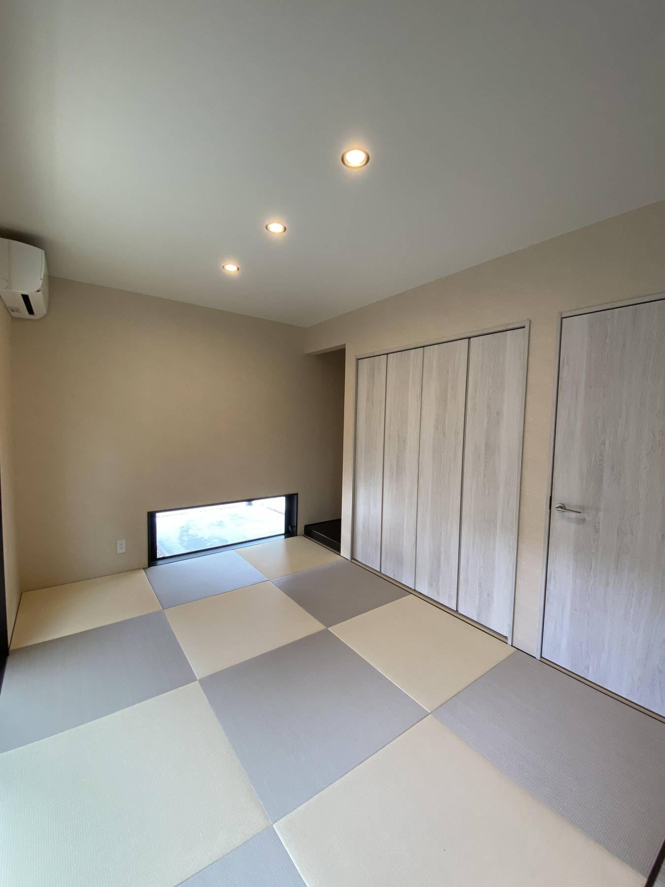 リビングから続く和室は色違いの正方形の畳でかわいらしく。