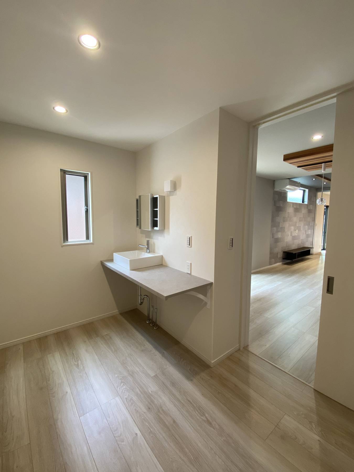 おしゃれな洗面台を設置した、広々とした洗面室は、ご家族の身支度も楽々です。