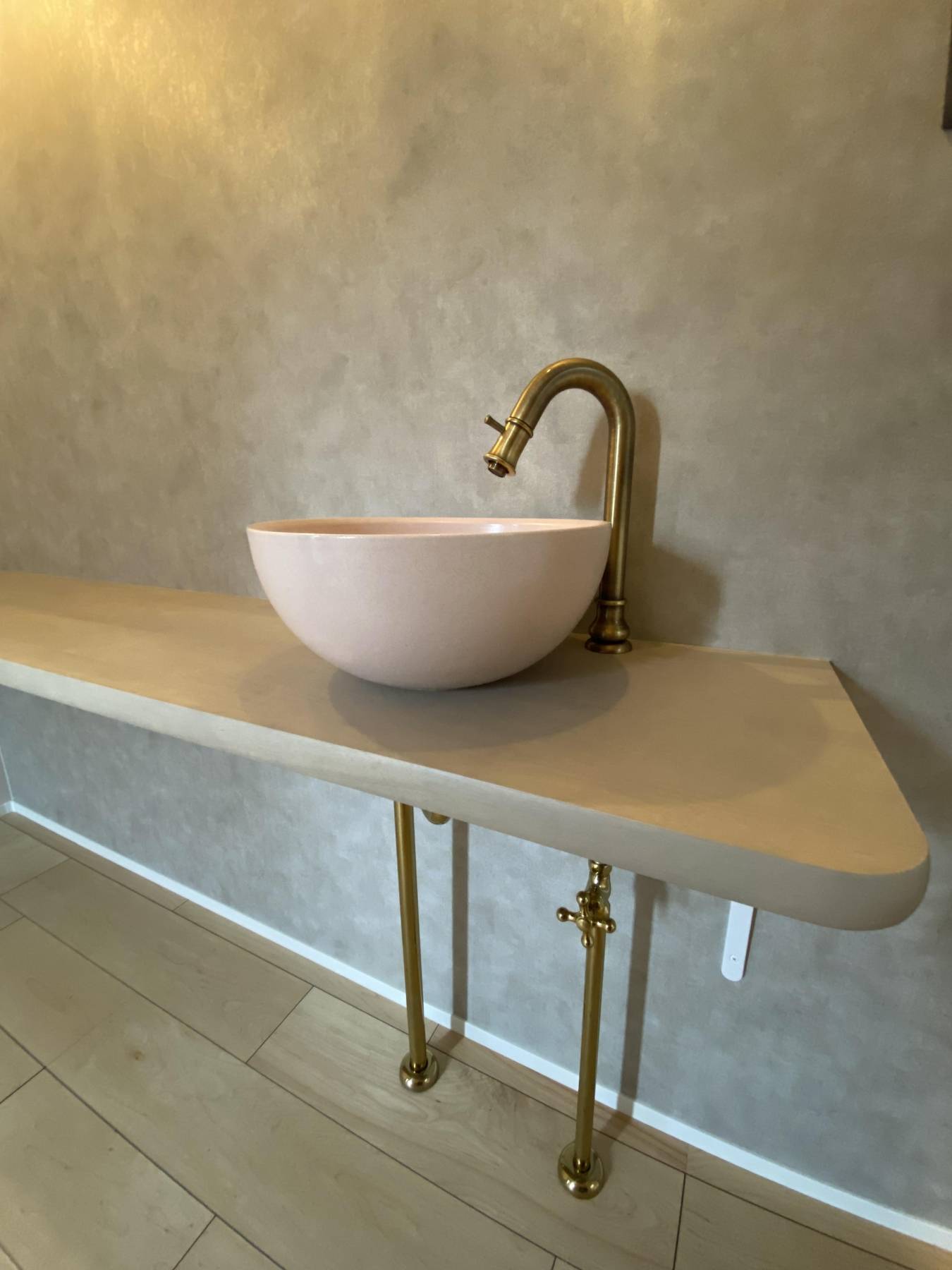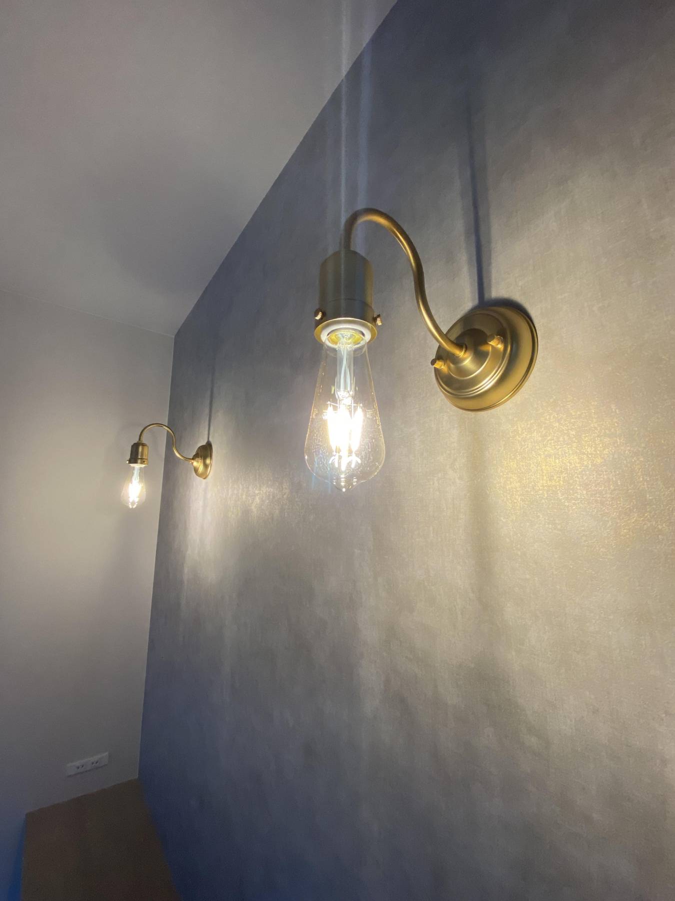 グレーのドアやキッチンで統一感がありながらかわいらしさもあるLDK。