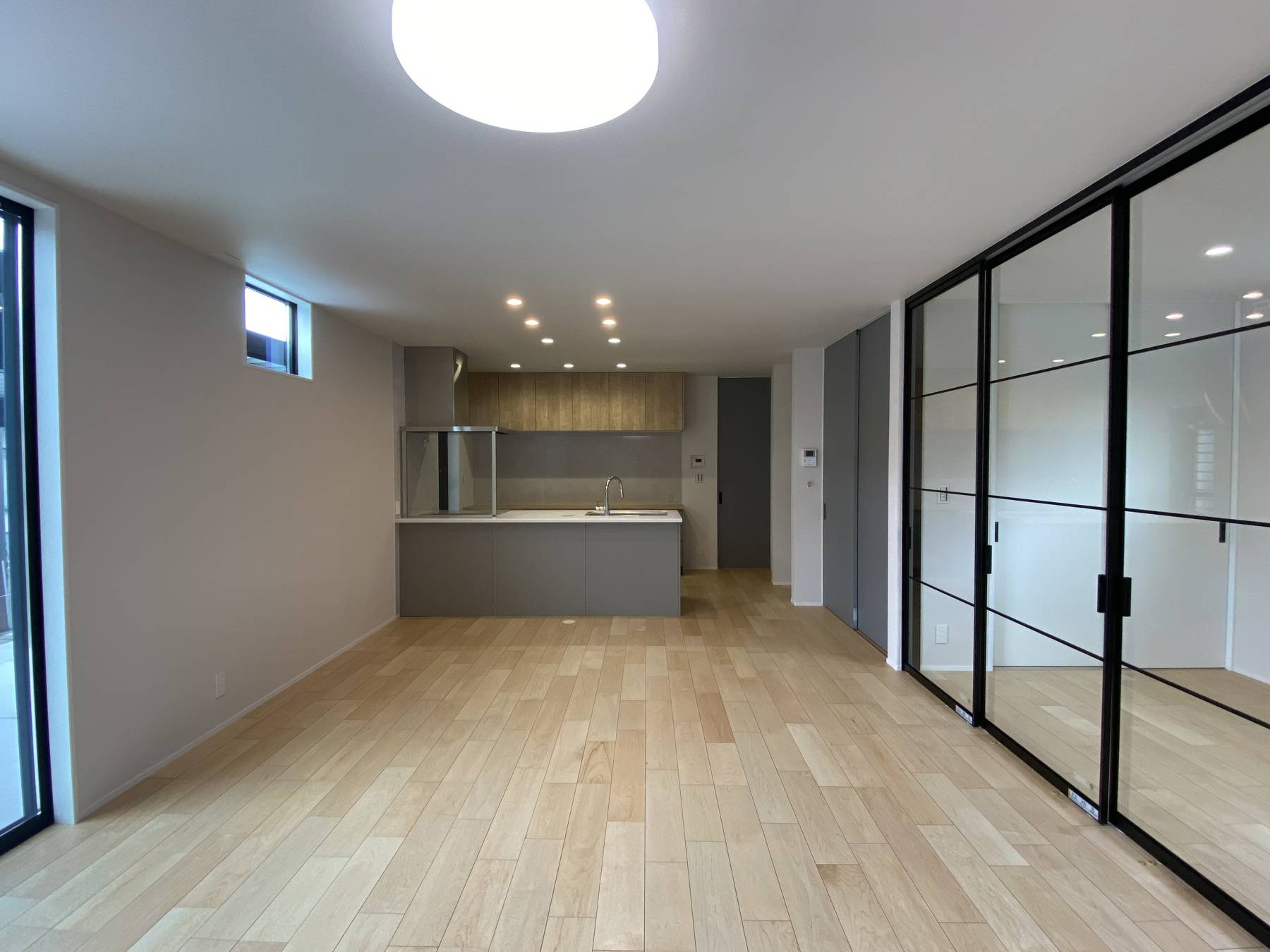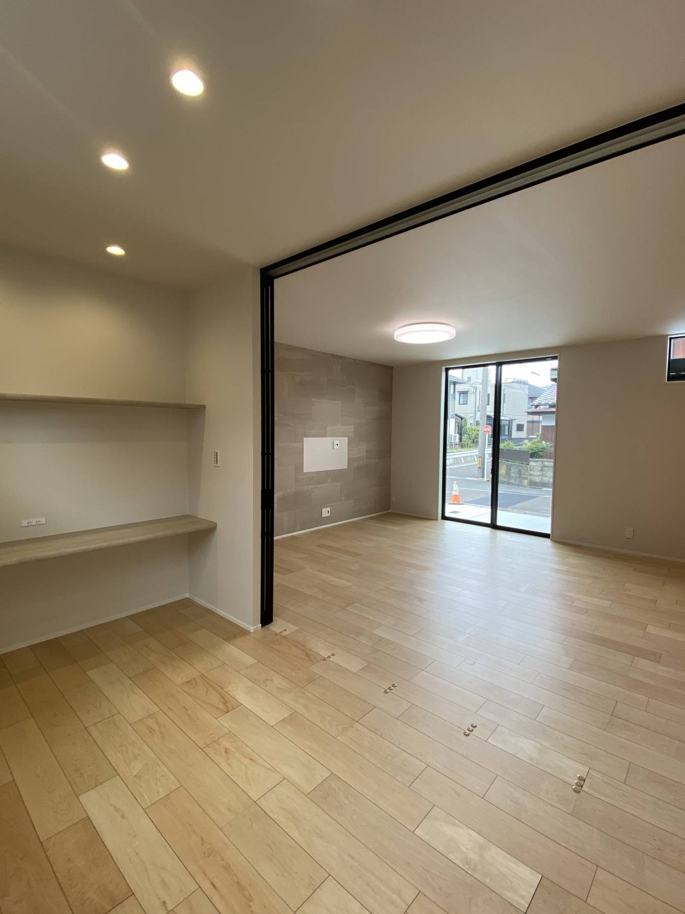 リビング横にはガラスのドアで仕切られた多目的ルーム。お子様のお勉強に、テレワークに、趣味に、様々な用途で活躍するスペースです。