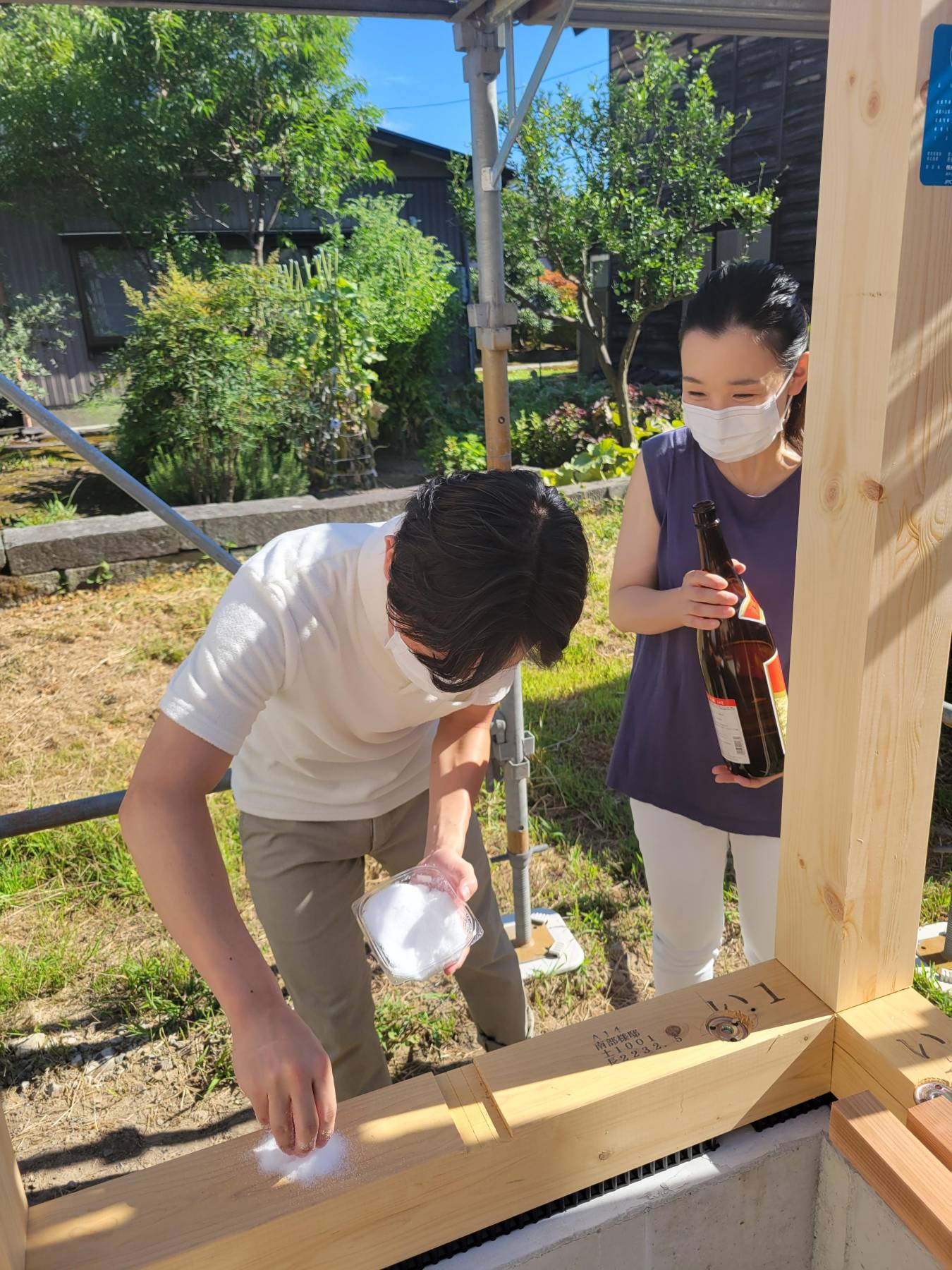 お施主さまには、建物の四隅に塩を盛り、お清めして頂きました。