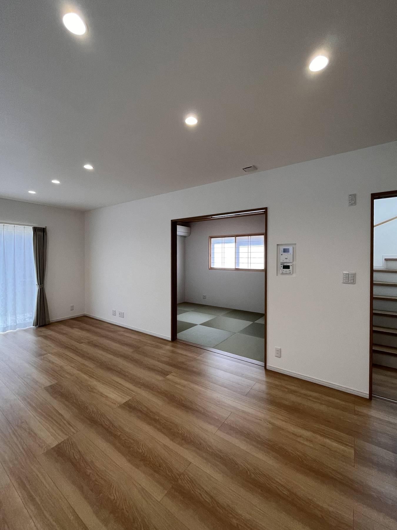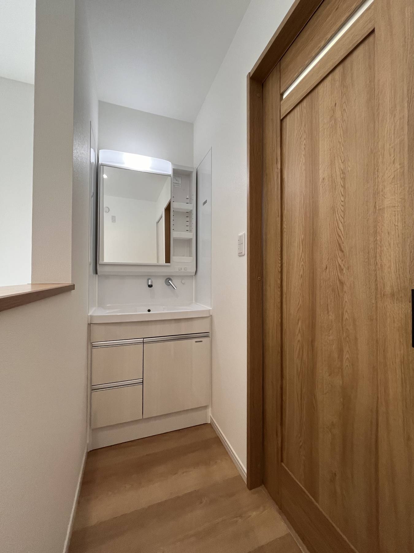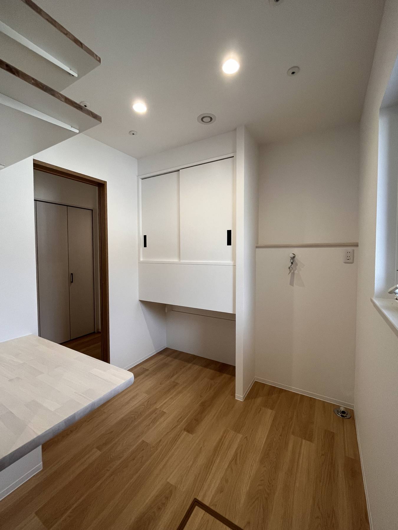 お引渡し完了しました(制震木造/福井市/Y様邸) 2022/08/20 最終更新日時 : 2025/04/28 ミライスタイルライター グレーの外壁に玄関の目隠しにもなる木目のルーバーがアクセントになった外観。 白を基調としたシンプルで居心地の良いLDK。 リビングに隣接した和室は、扉を閉めて独立した空間にできるため、お客様をお招きするときも便利なスペースです。 キッチンとつながるサンルームは、家事楽収納の家具を介して脱衣室側とつながり、家事楽な回遊動線を確保。 忙しい朝の身支度の時間にも便利な2階の手洗いスペース。 施工面積 142.42㎡/43.08坪 制震木造