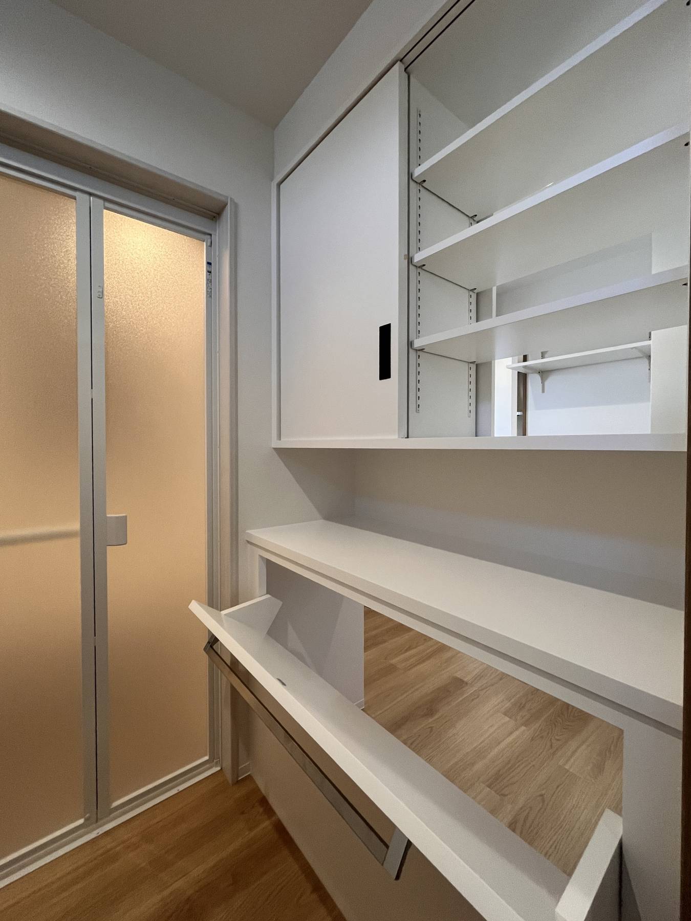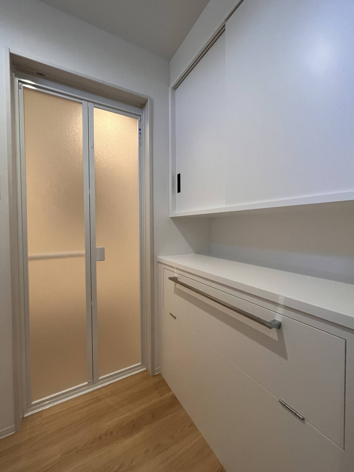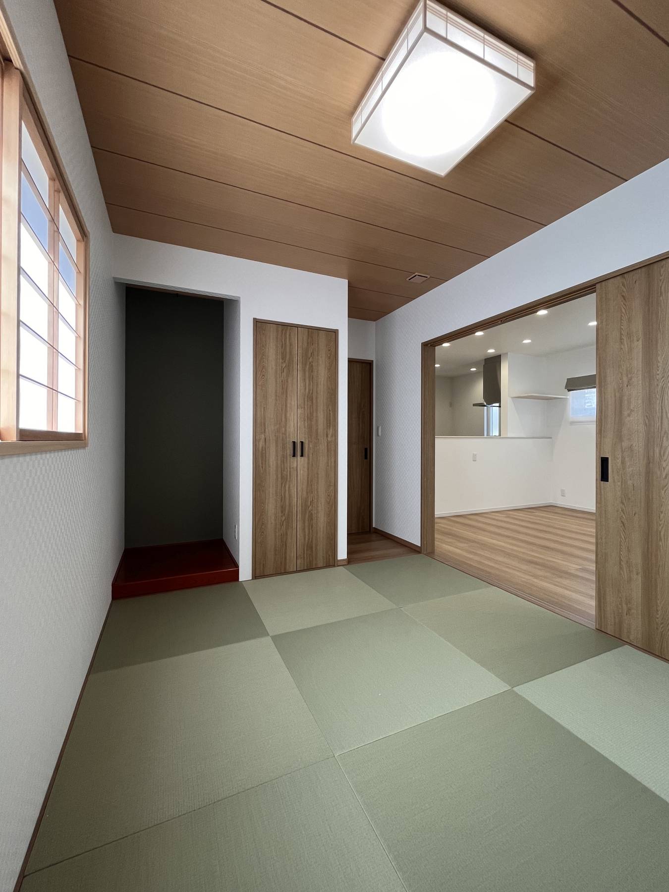 お引渡し完了しました(制震木造/福井市/Y様邸) 2022/08/20 最終更新日時 : 2025/04/28 ミライスタイルライター グレーの外壁に玄関の目隠しにもなる木目のルーバーがアクセントになった外観。 白を基調としたシンプルで居心地の良いLDK。 リビングに隣接した和室は、扉を閉めて独立した空間にできるため、お客様をお招きするときも便利なスペースです。 キッチンとつながるサンルームは、家事楽収納の家具を介して脱衣室側とつながり、家事楽な回遊動線を確保。 忙しい朝の身支度の時間にも便利な2階の手洗いスペース。 施工面積 142.42㎡/43.08坪 制震木造