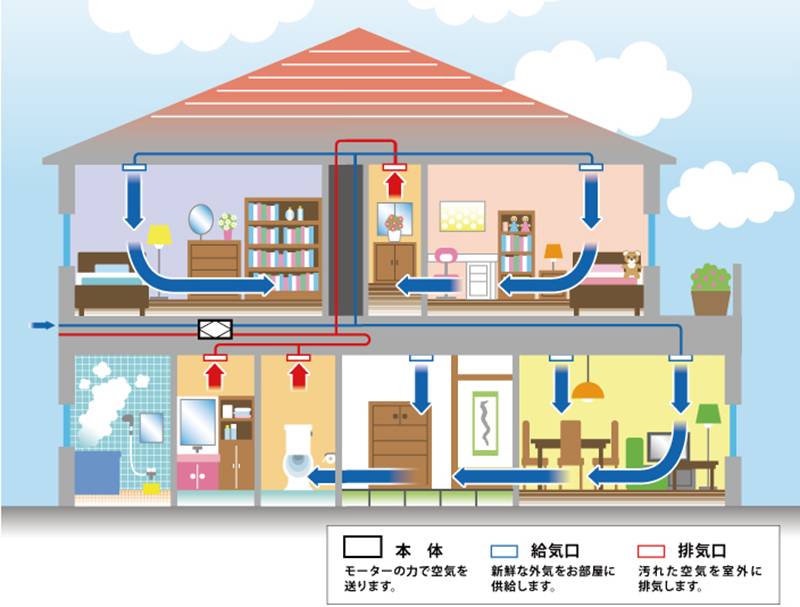 部屋ごとに冷暖するエアコンなどと比較して、廊下、洗面所、トイレ、お風呂場など、家の中を隅々まで一定の温度に保ち、家中を快適な温度に調整することができます。