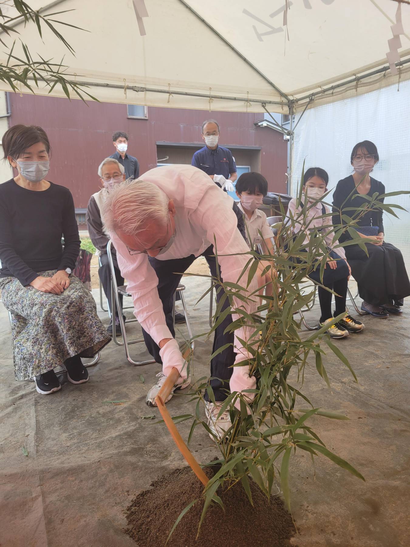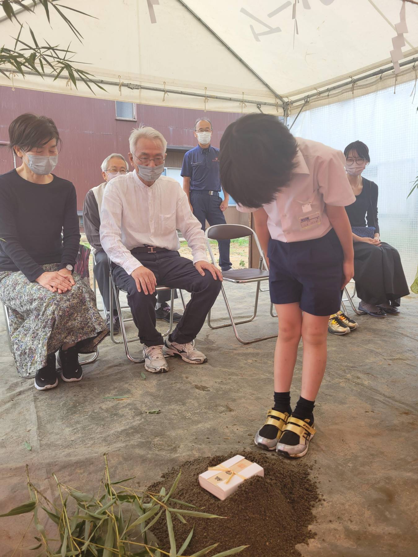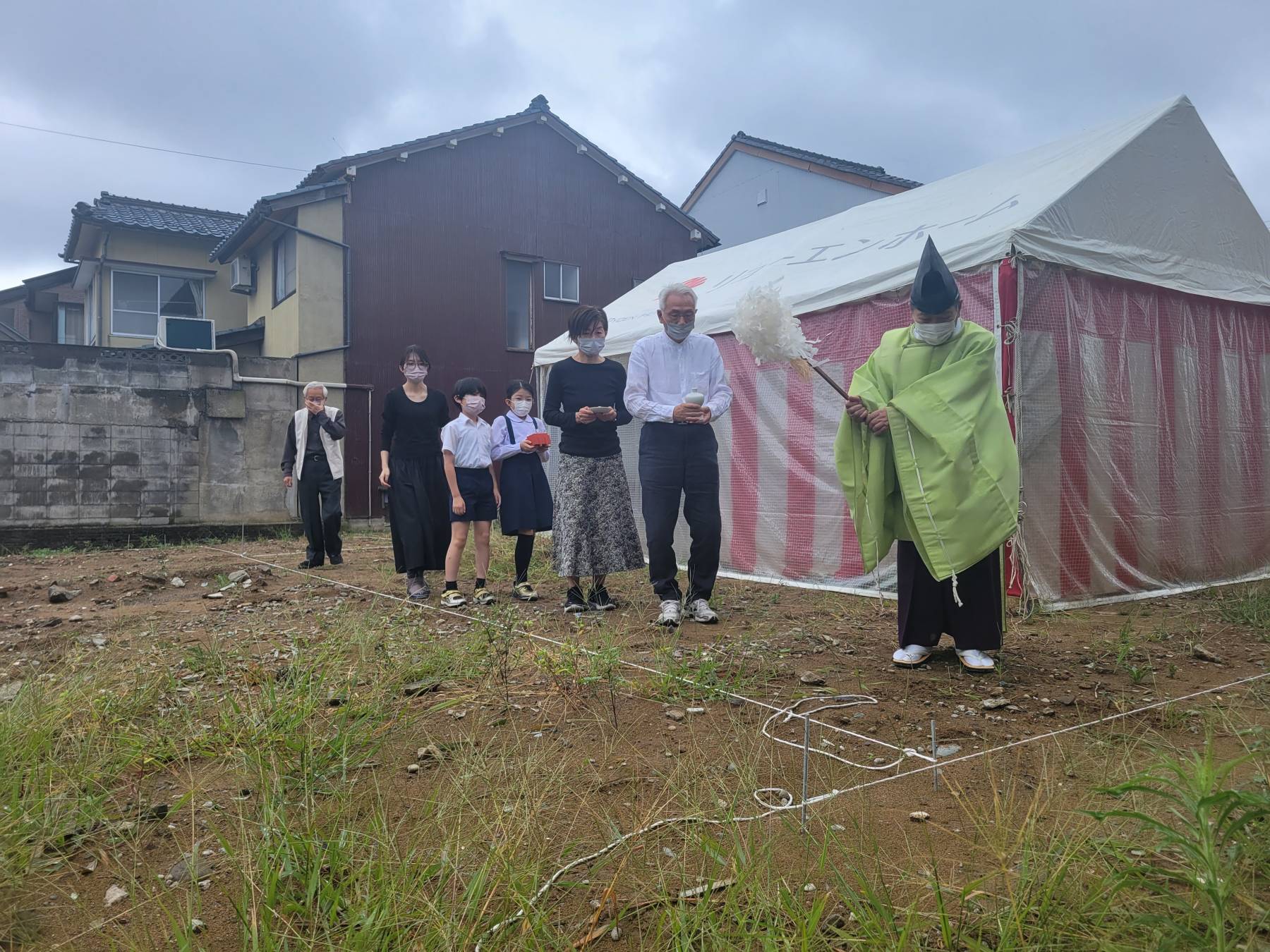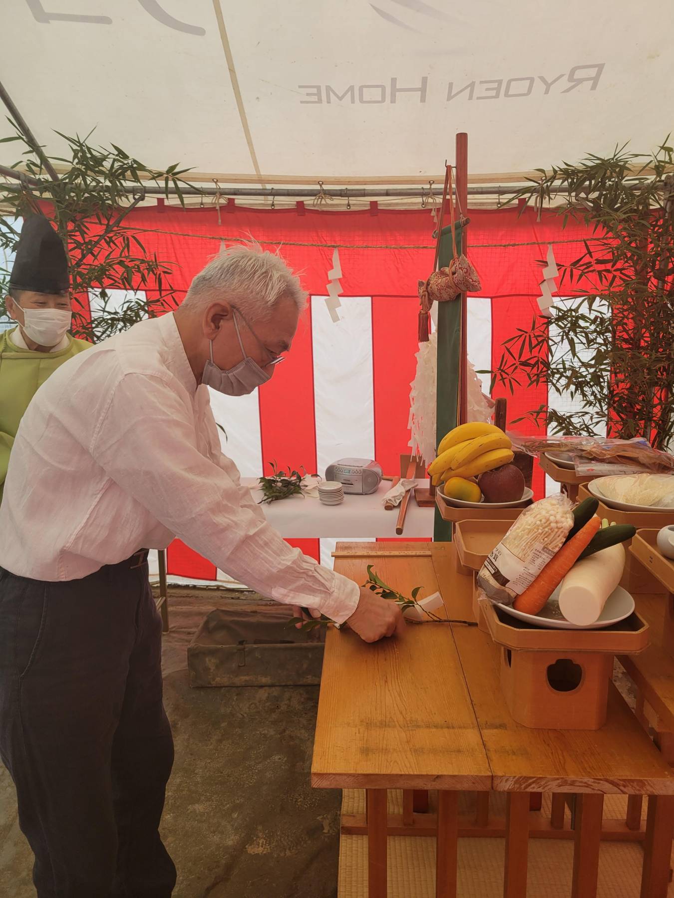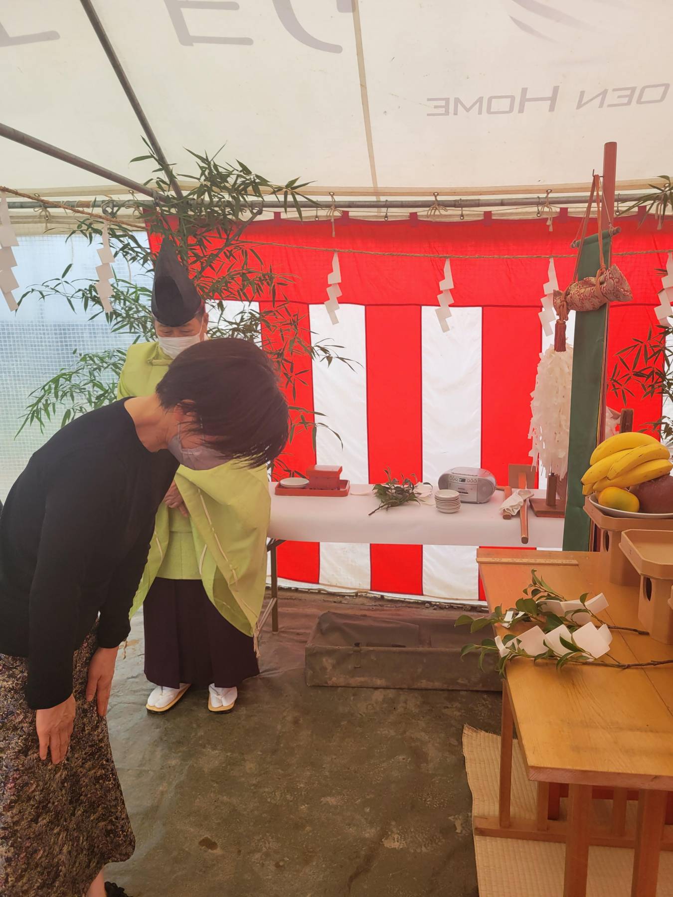 まずはこの土地の神様をお呼びする儀式を行い、建物の建つ四隅をお清めします。