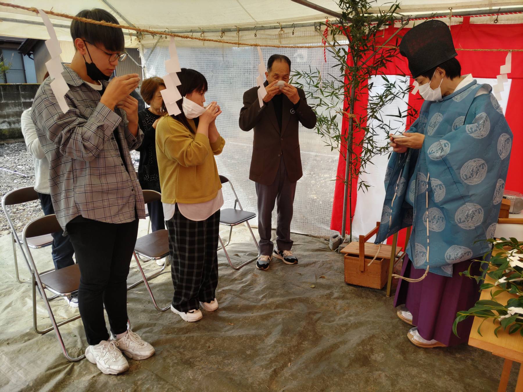 最後に皆さんでお神酒を頂き、地鎮祭の儀式が滞りなく終了しました。
