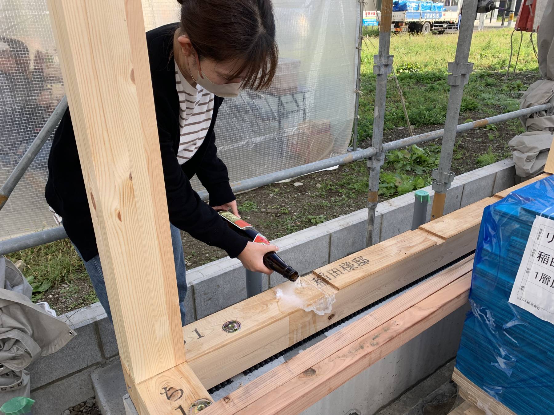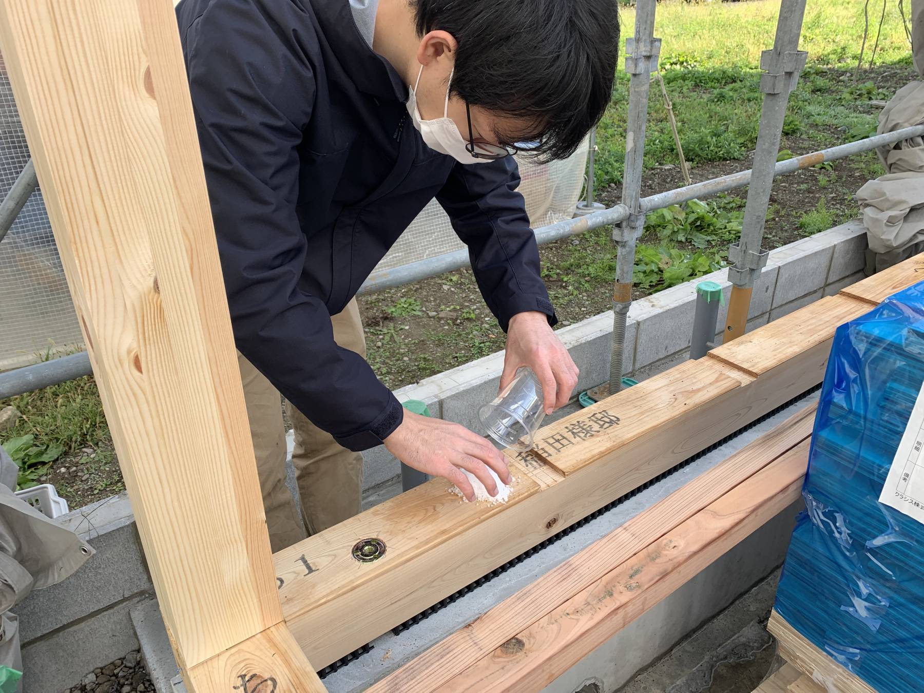お施主さまには、建物の四隅に塩を盛り、お清めして頂きました。