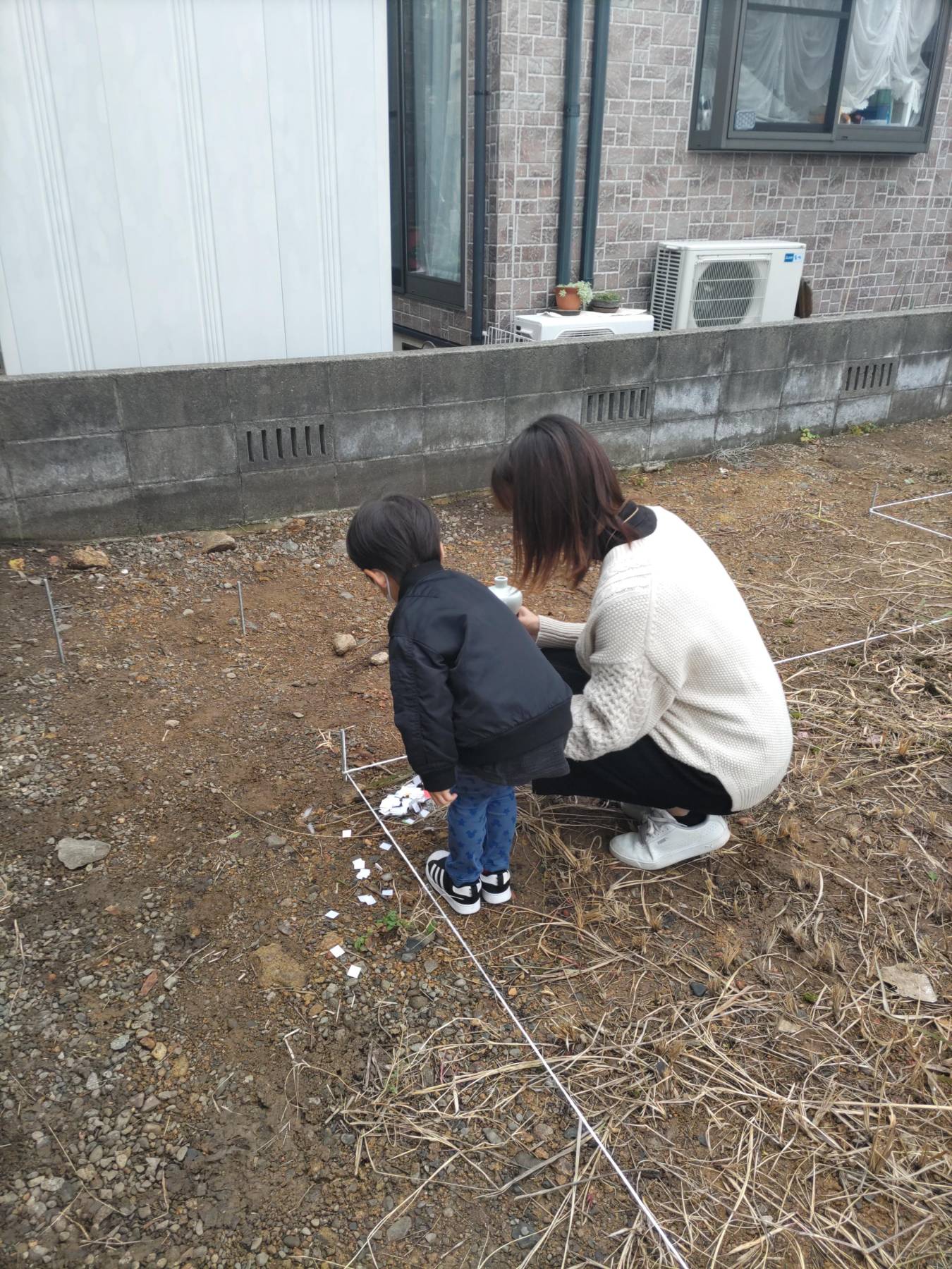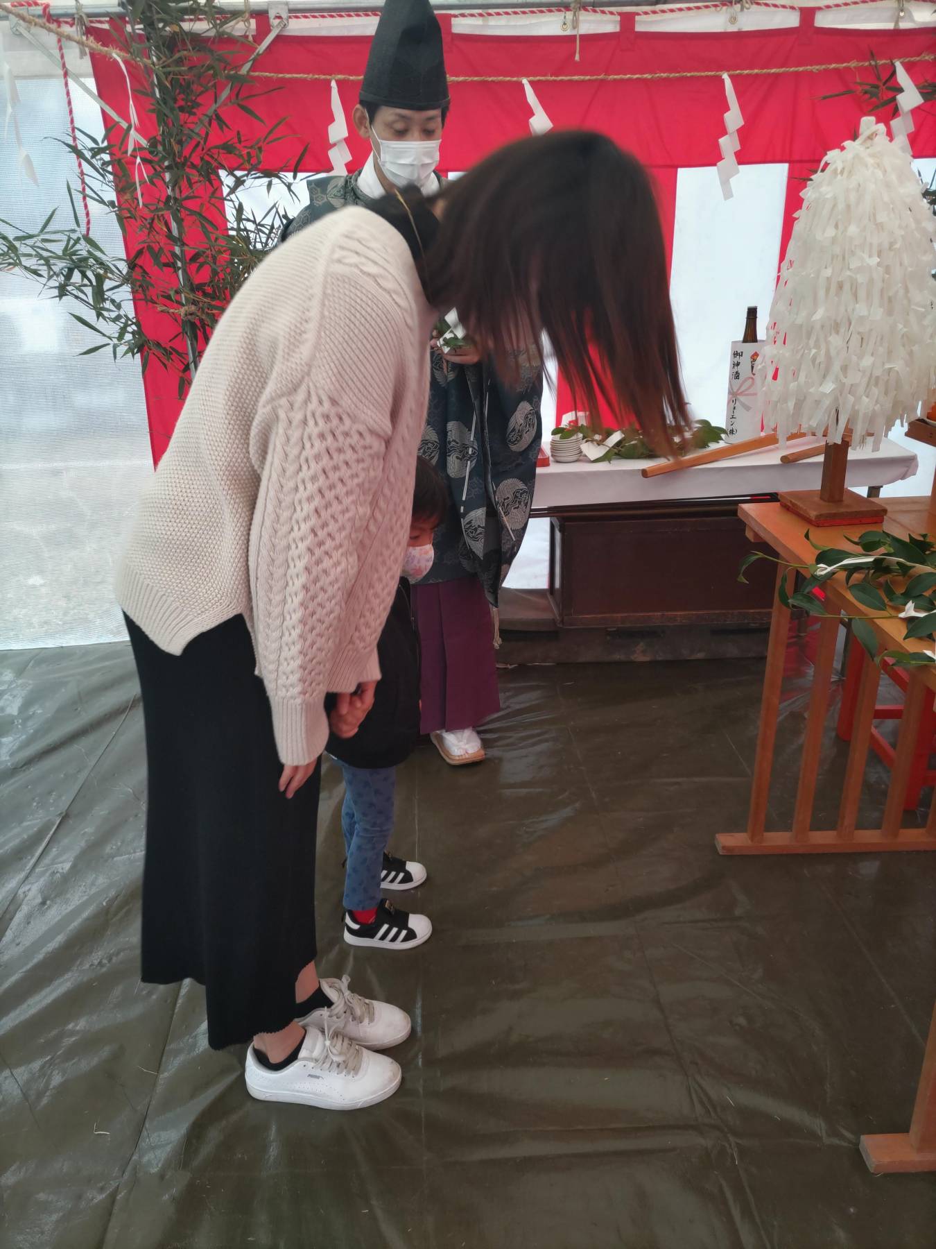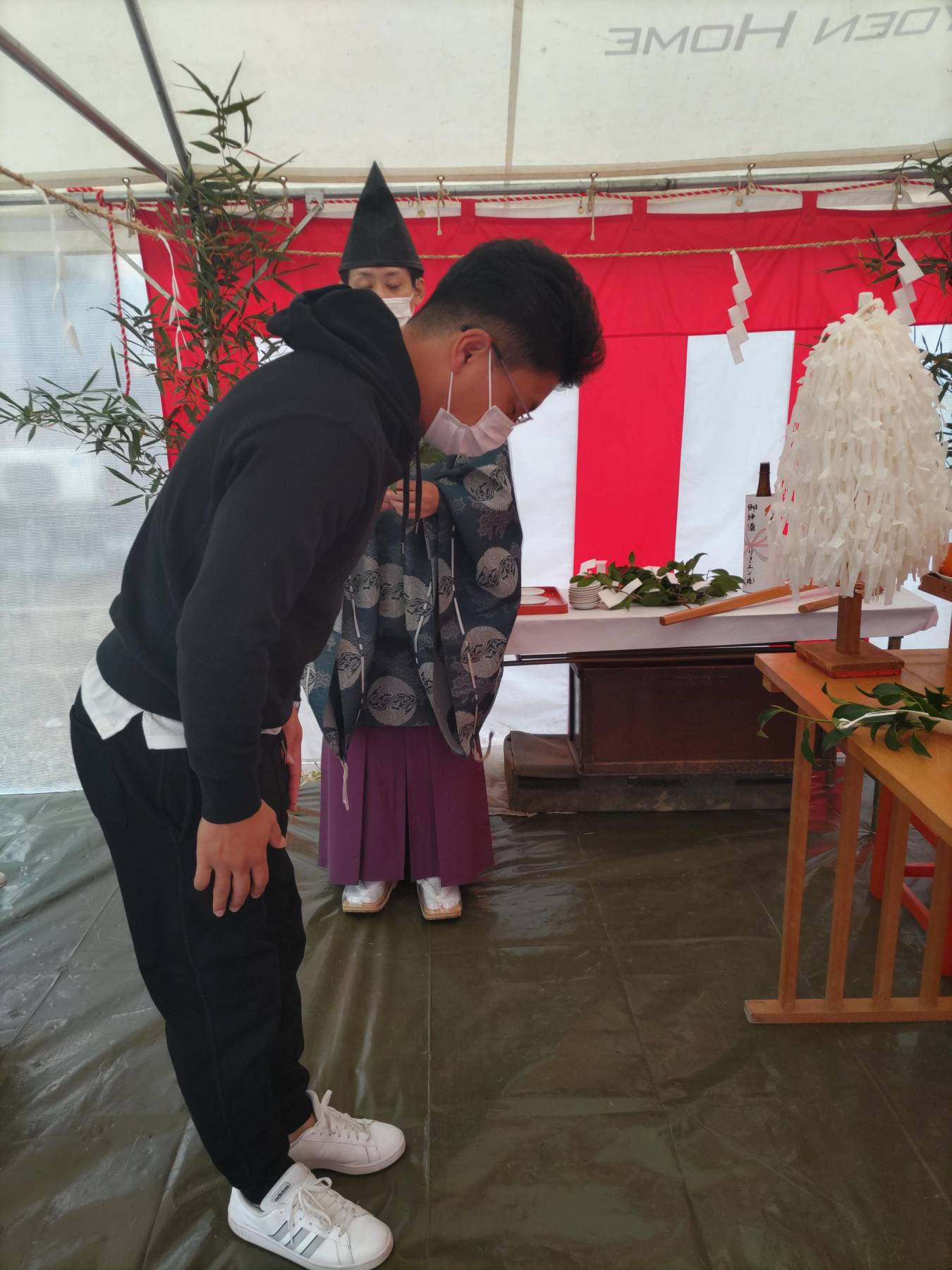 まずはこの土地の神様をお呼びする儀式を行い、建物の建つ四隅をお清めします。