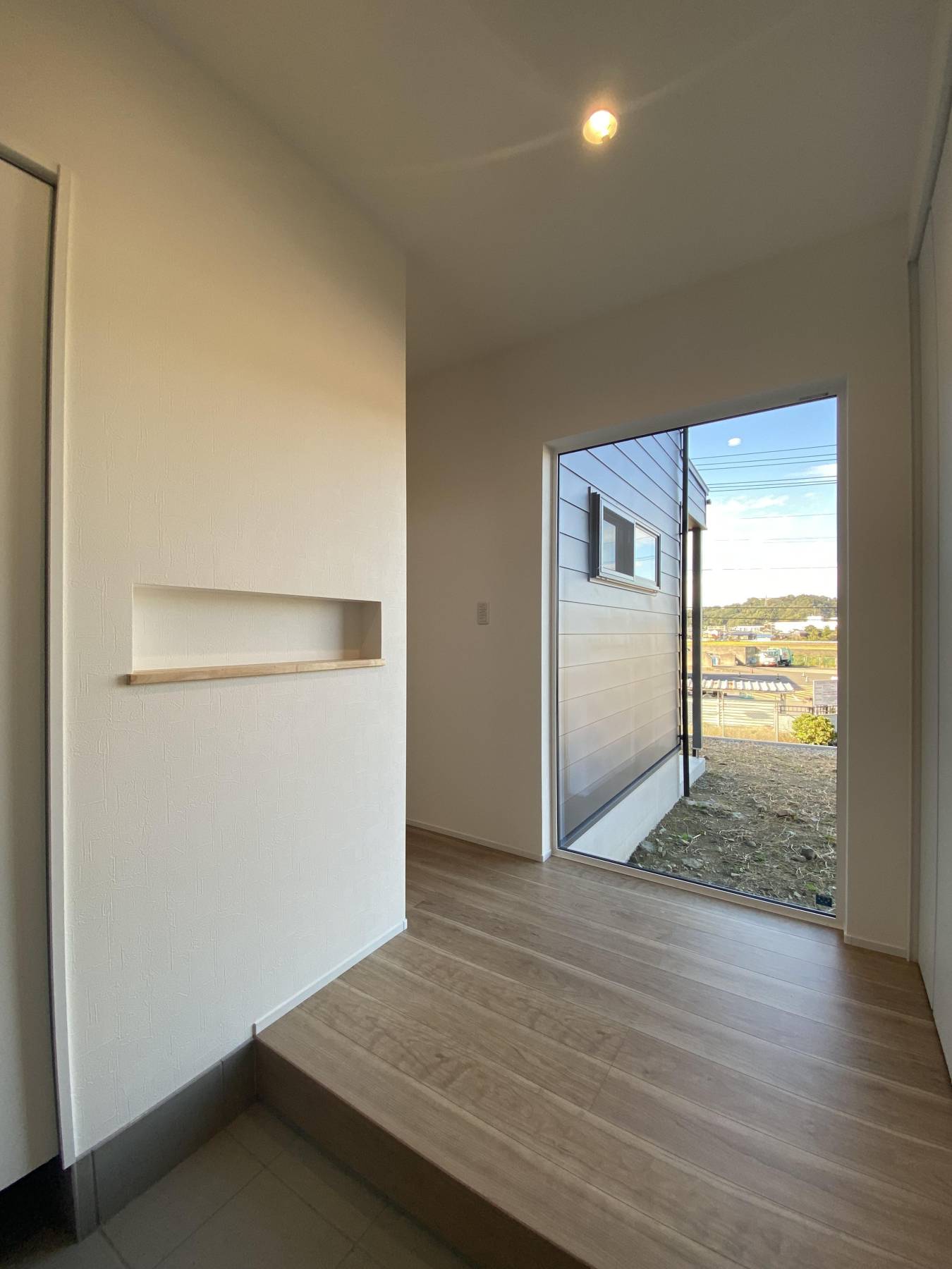 土間収納がある玄関は、靴やレジャー用品も収納でき、いつもスッキリとした玄関を保ちます。