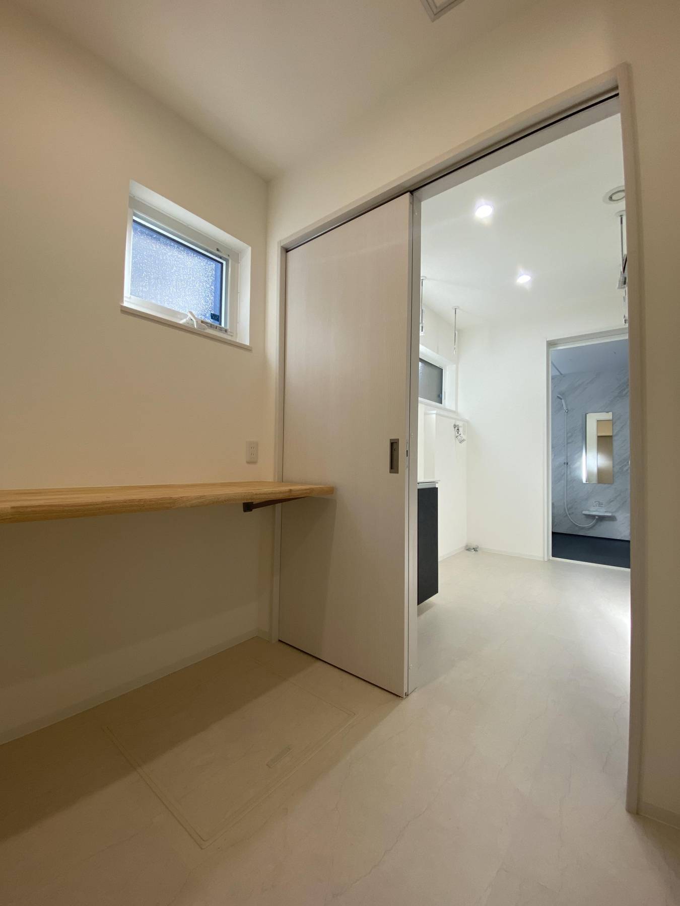 バス・ユーティリティー・ファミリークロークがまとまっていて、家事楽な動線を確保しています。