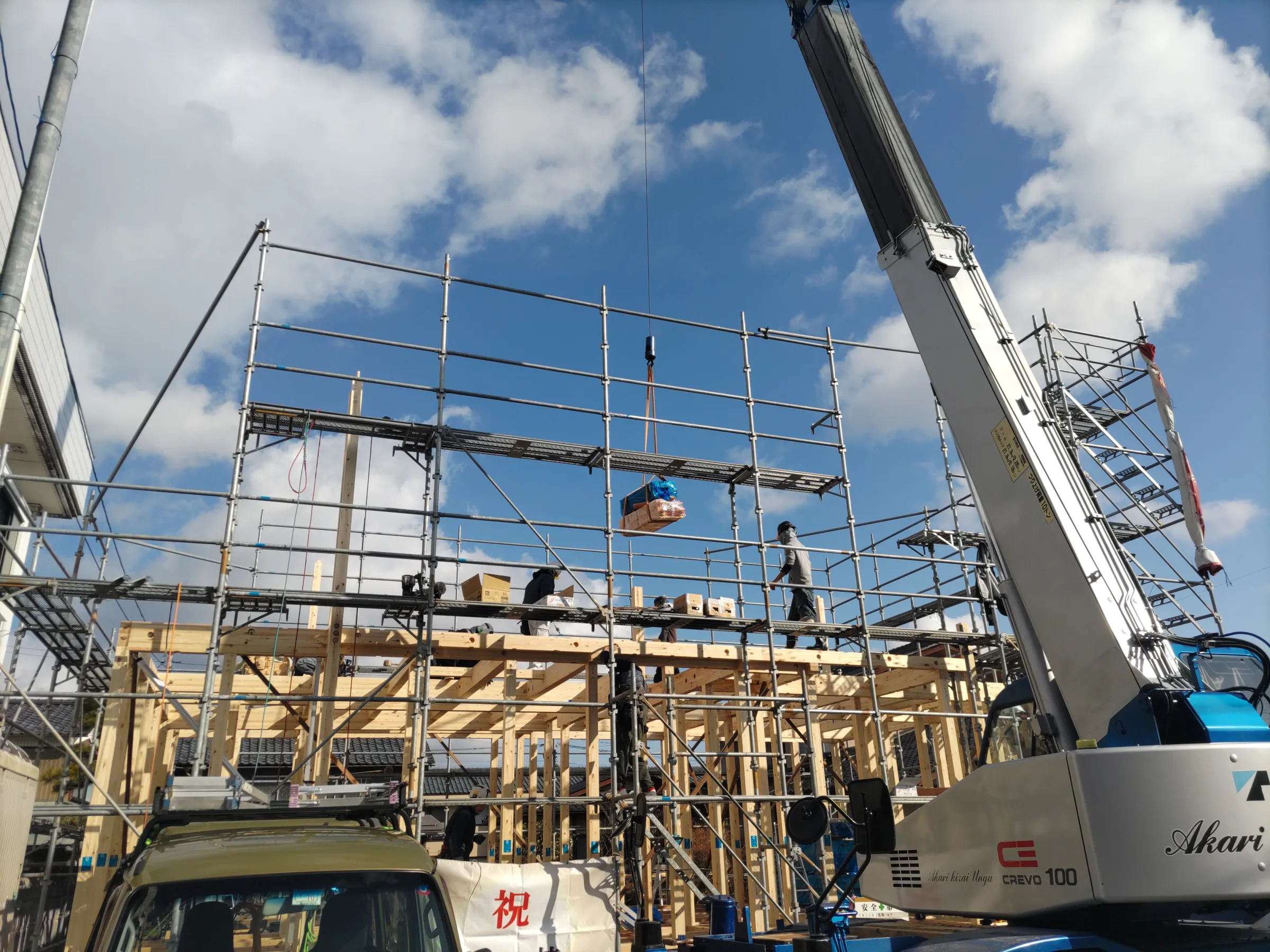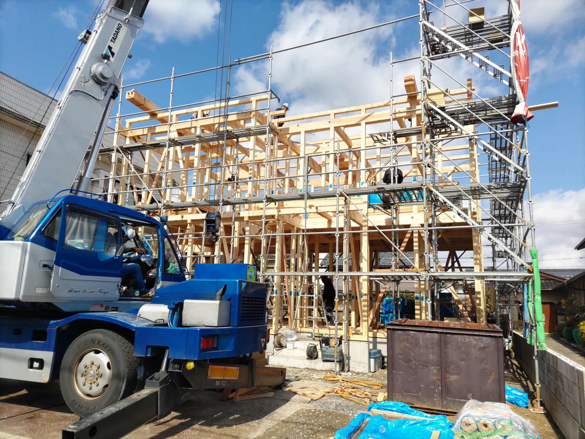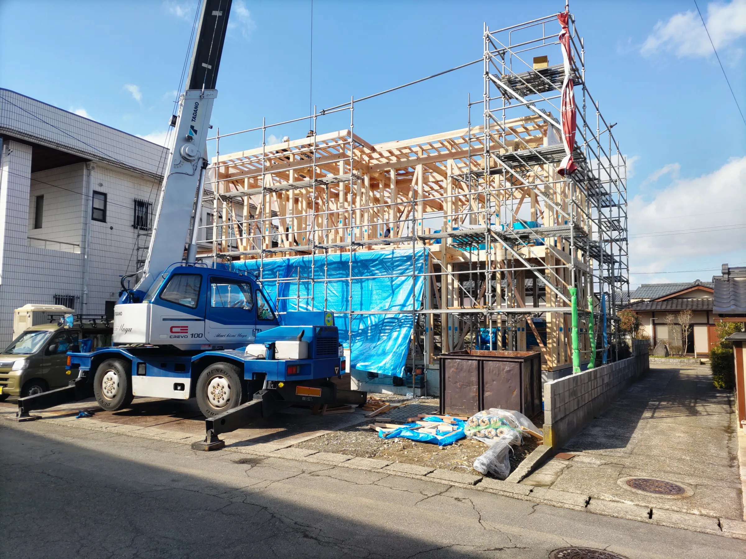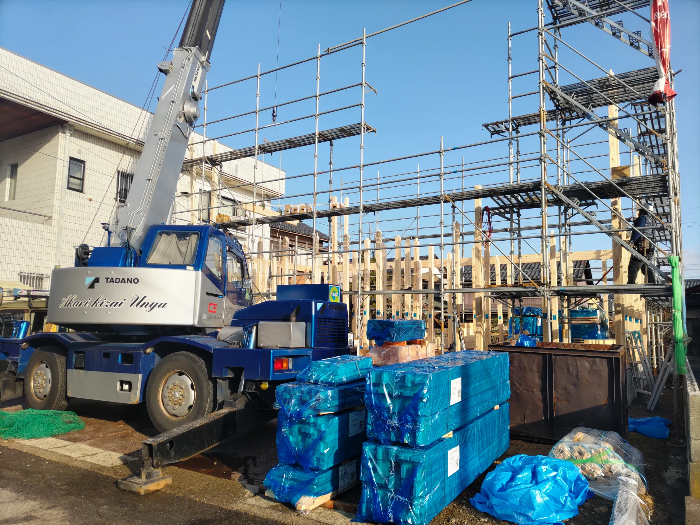 気持ちの良い冬晴れのおかげで、活気ある中、建方もスタートしました!