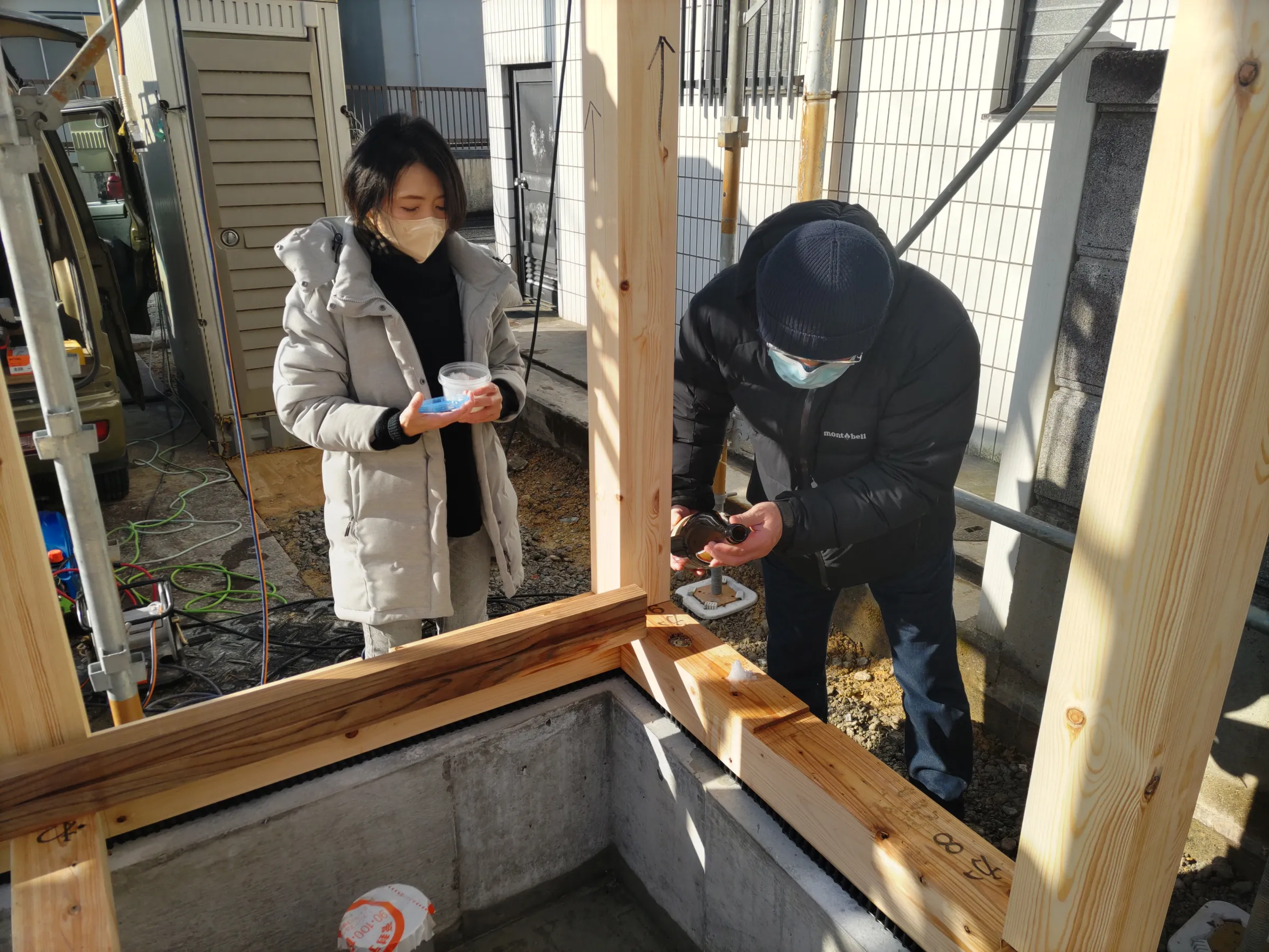 柱が立って家の骨組みが出来ると一気にイメージが湧いてきますね♩