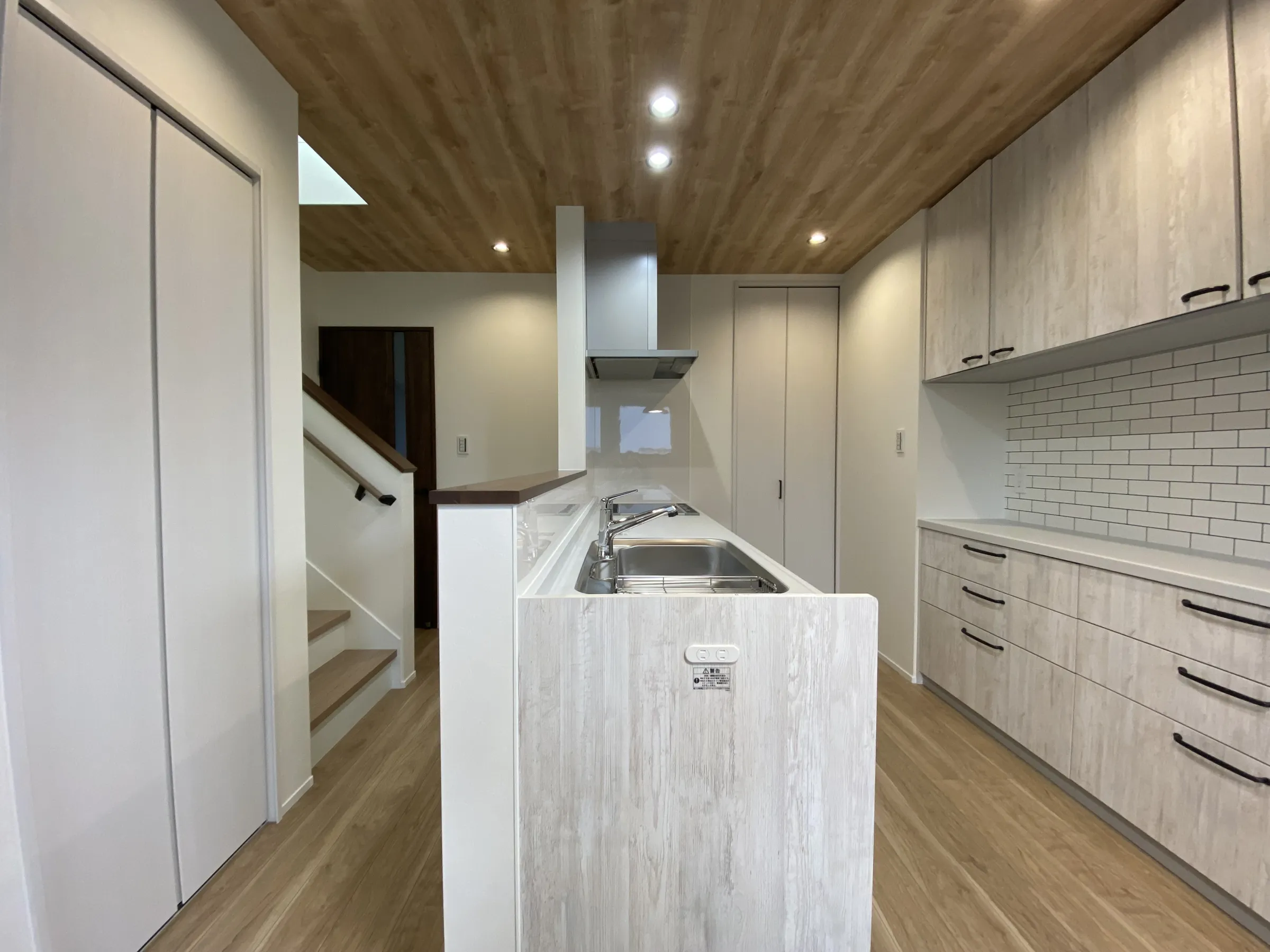 お引渡し完了しました(アフレール/福井市/Y様邸) 2023/01/19 最終更新日時 : 2025/05/12 ミライスタイルライター 白とグレーのコントラストがかわいい外観。 キッチリと仕切られ、ON・OFFの切り替えをしやすい店舗兼住宅となっています。 約15帖のLDKはくすみカラーのクロスや白の木目のキッチンがやわらかな空間を演出しています。 居住空間には、収納スペースの工夫がいっぱいで、暮らしやすい設計です。 店舗空間は、かわいいアイテムで居心地よく、落ち着く空間を演出しています。 施工面積 113.43㎡/34.31坪 アフレール 4LDK+店舗