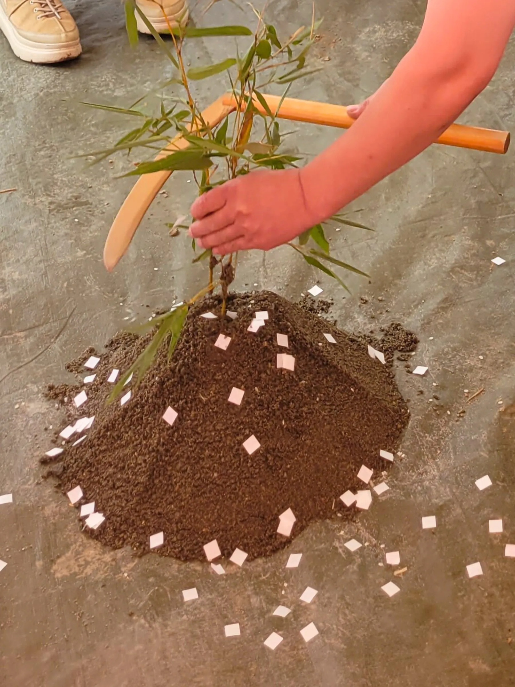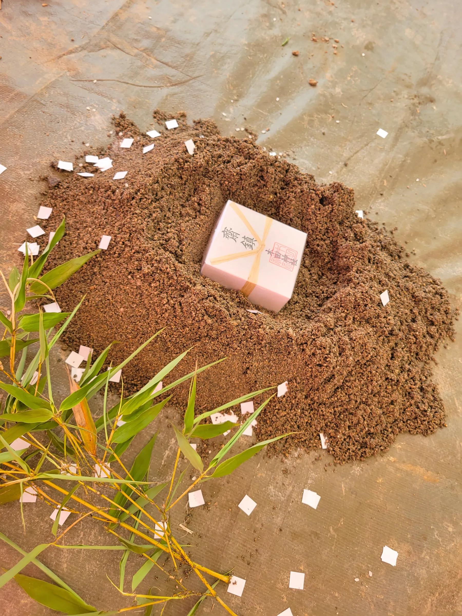 お清めが済むとテントに戻り、この土地に初めて手を入れる儀式をします。