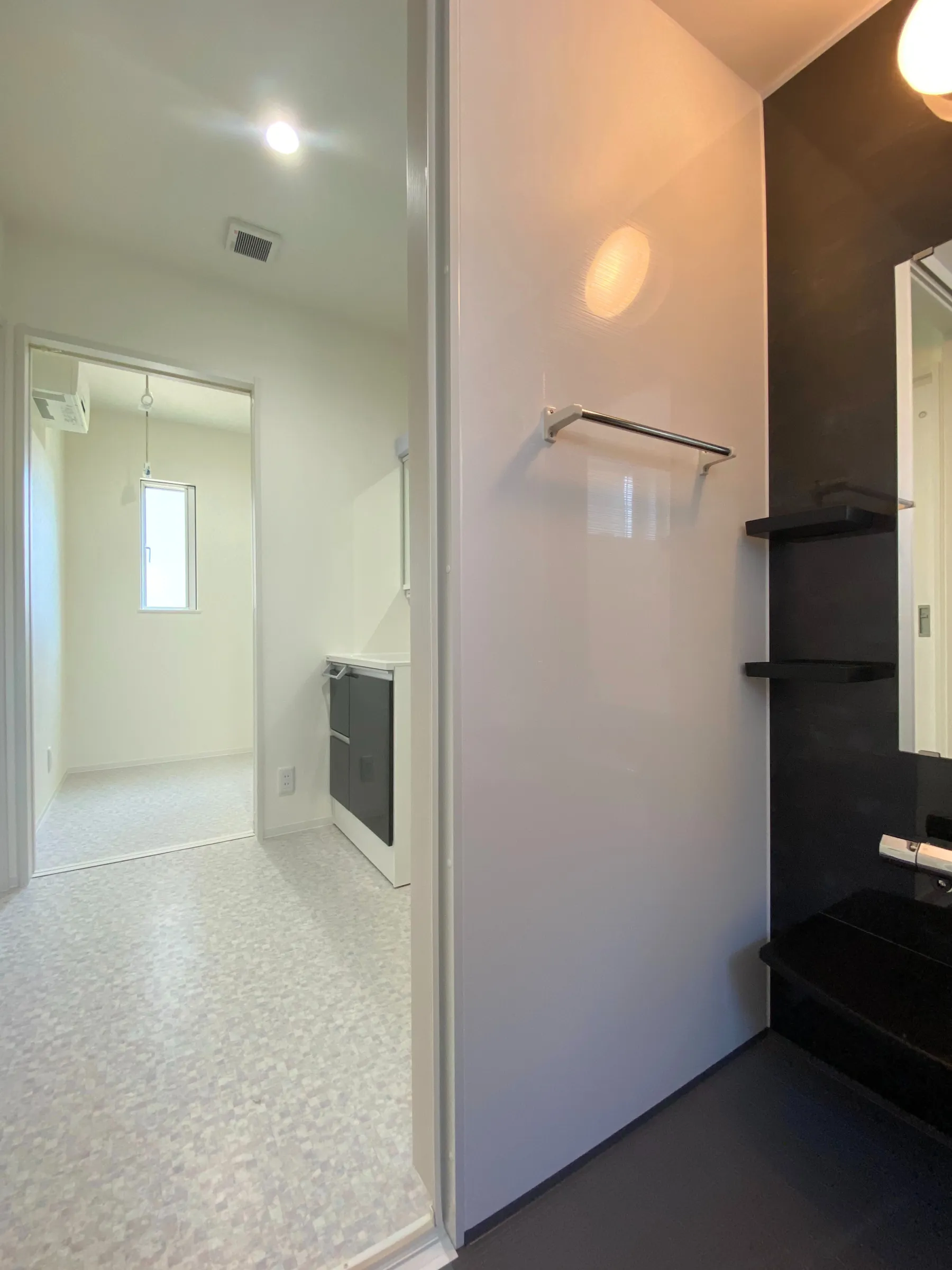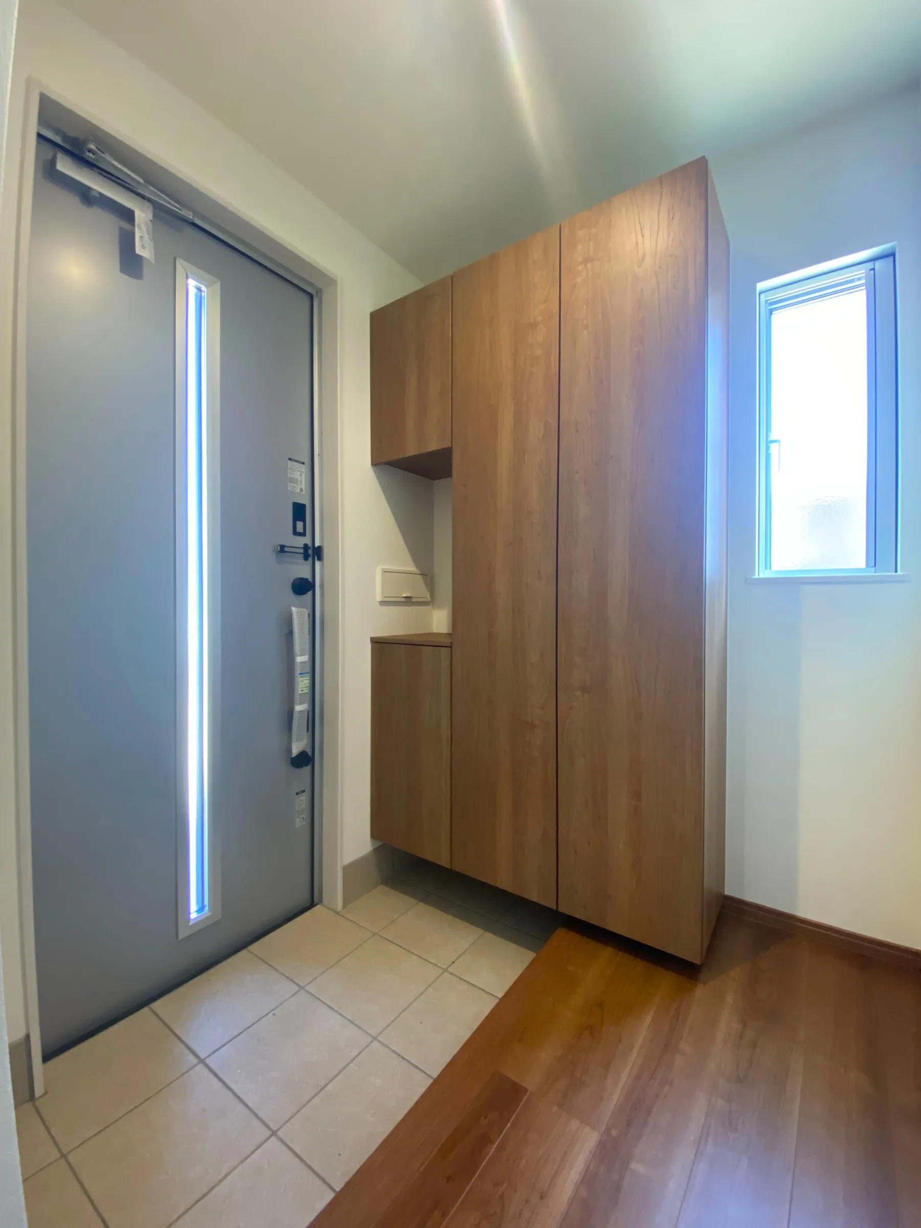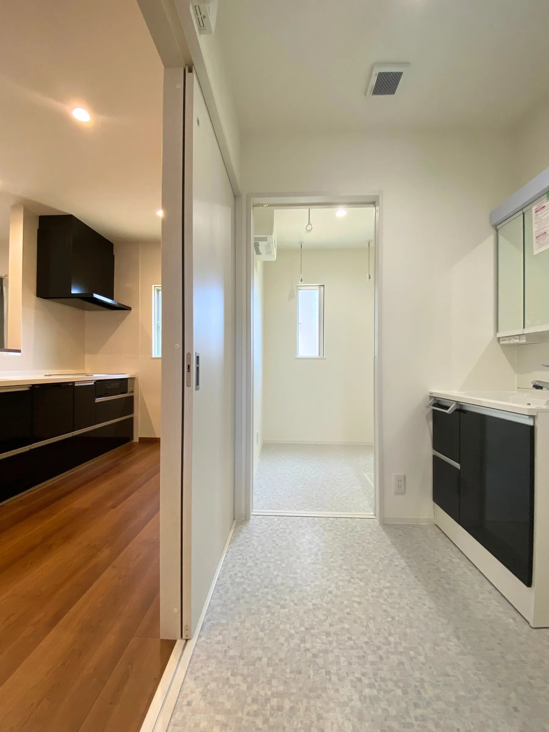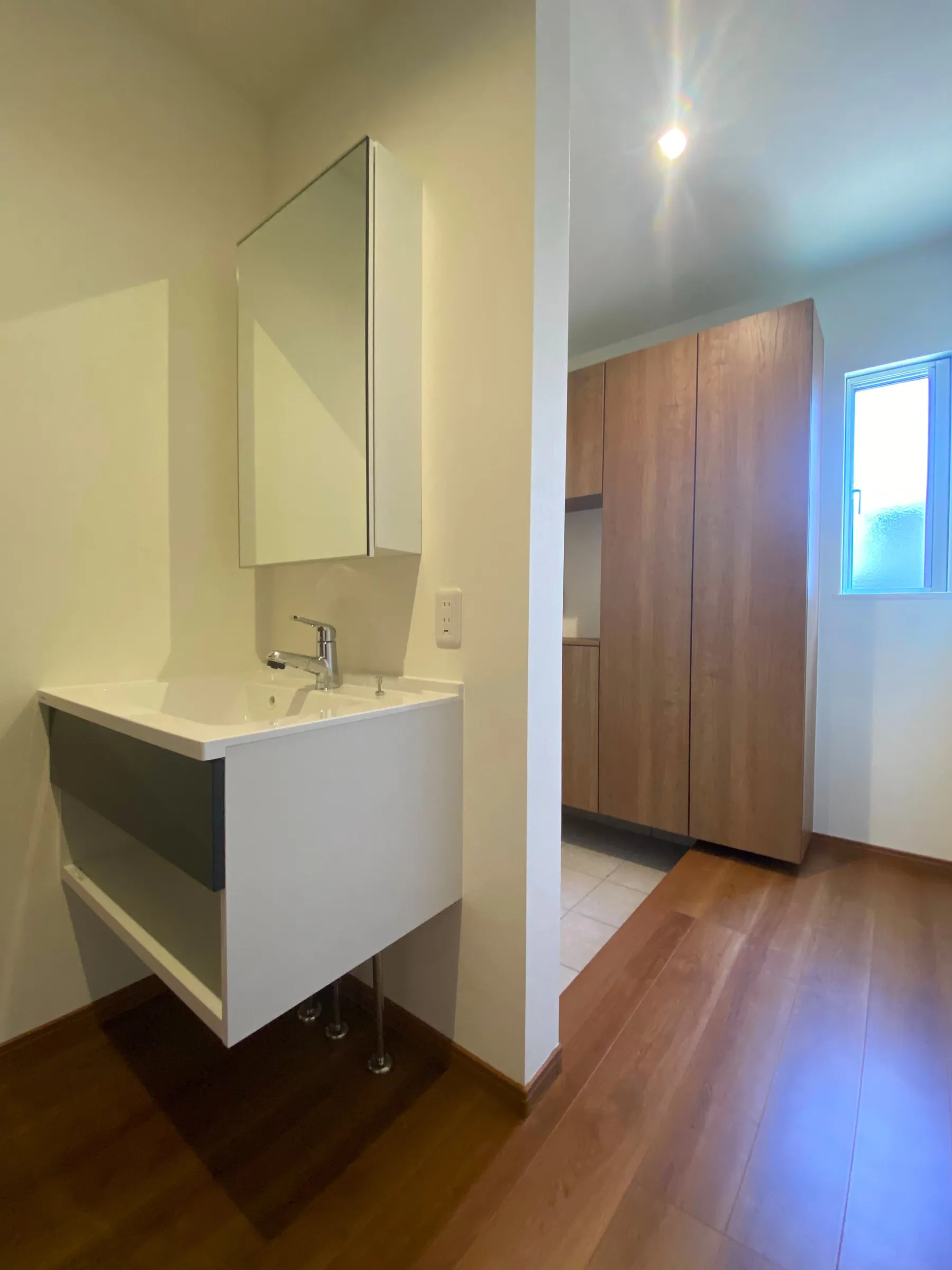 帰宅後にすぐ手を洗えるよう、洗面台が備わった玄関。