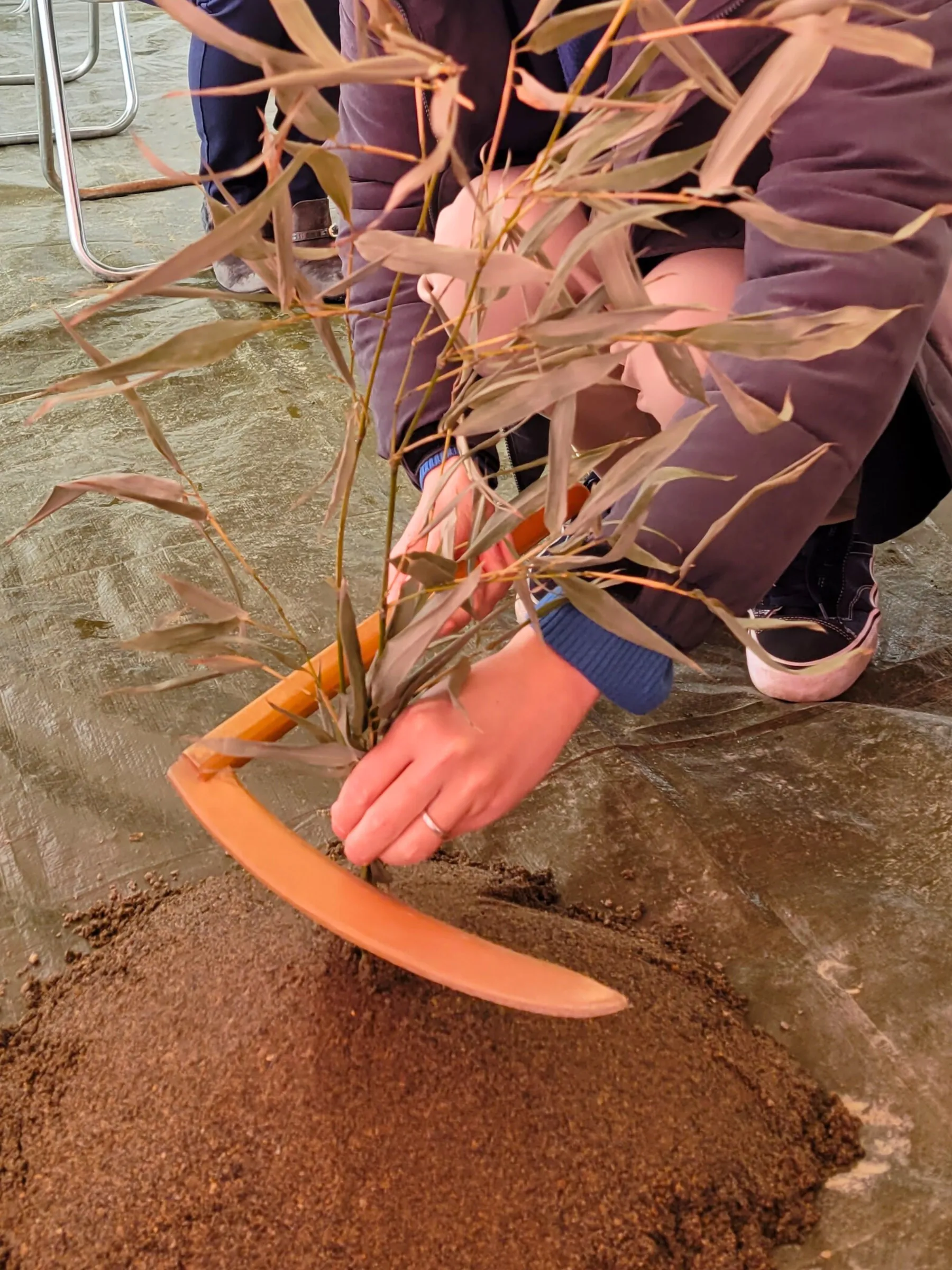 お清めが済むとテントに戻り、この土地に初めて手を入れる儀式をします。