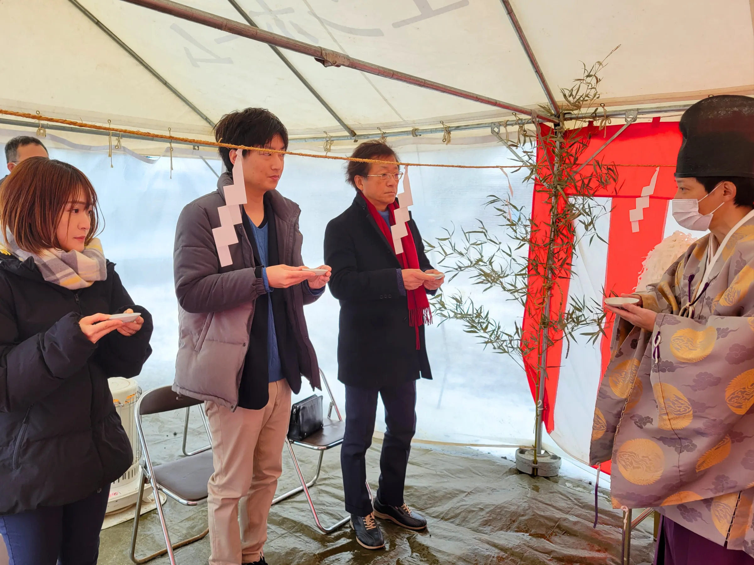 最後に皆さんでお神酒を頂き、地鎮祭の儀式が滞りなく終了しました。