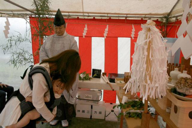 お清めが済むとテントに戻り、この土地に初めて手を入れる儀式をします。