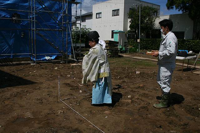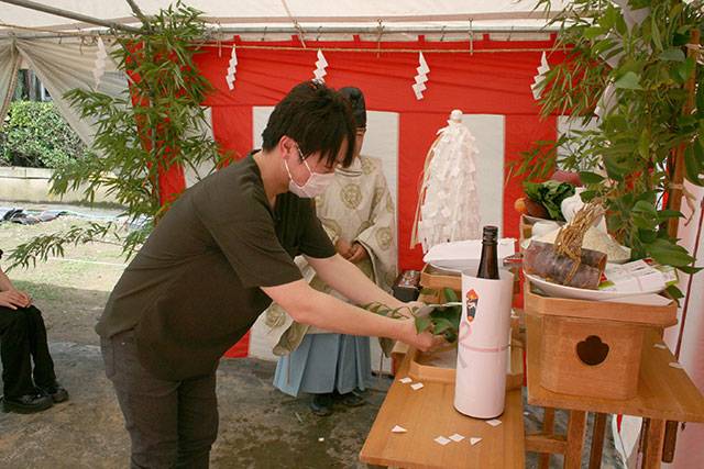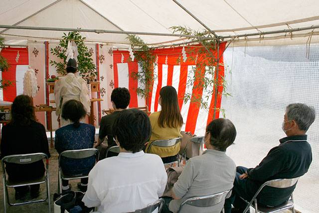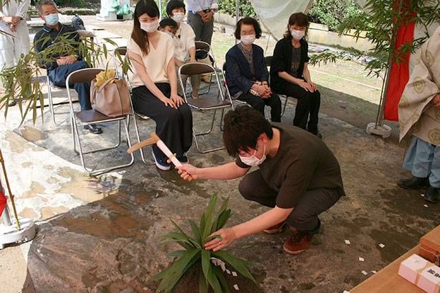 お清めが済むとテントに戻り、この土地に初めて手を入れる儀式をします。
