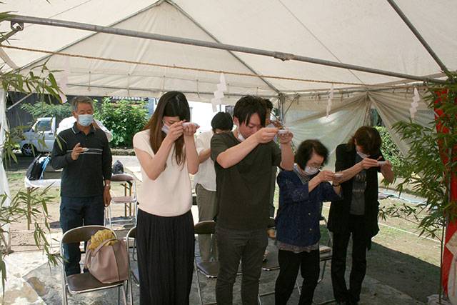 最後に皆さんでお神酒を頂き、地鎮祭の儀式が滞りなく終了しました。