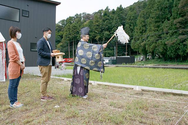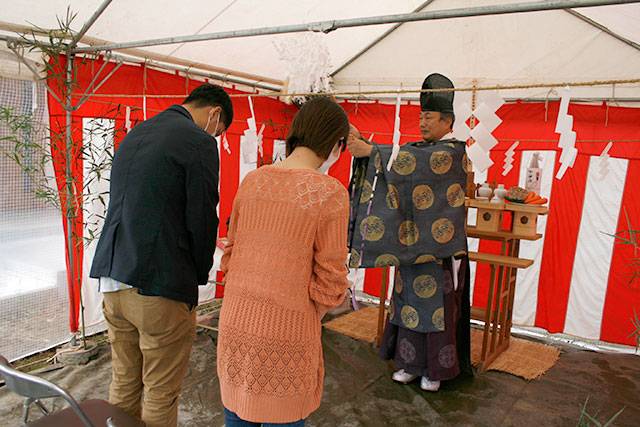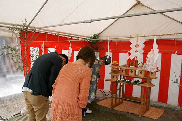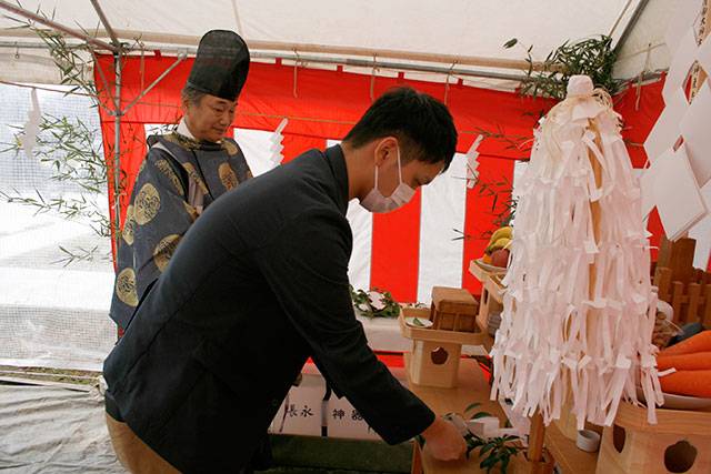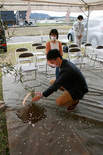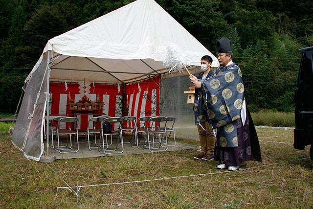 お清めが済むとテントに戻り、この土地に初めて手を入れる儀式をします。