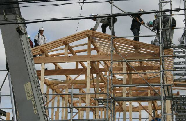屋根が掛かるといよいよ建物のかたちが見えてきます。