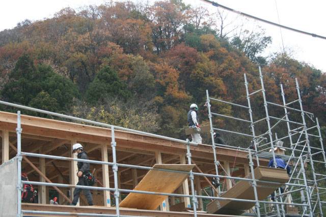 屋根が掛かるといよいよ建物のかたちが見えてきます。