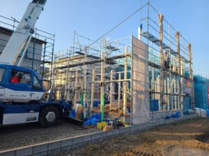 鯖江市にてS様邸の建方でした。 営業スタッフ、設計スタッフ、現場監督が立ち会いました。 とても寒く、お天気も心配でしたが、時折晴れ間がのぞく一日となりました。 お施主さまには、建物の四隅に塩を盛り、お清めして頂きました。 […]