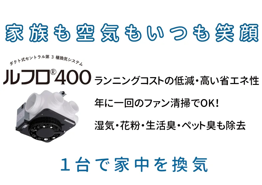 - ●ダクト式セントラル第三種換気システムで家中を換気