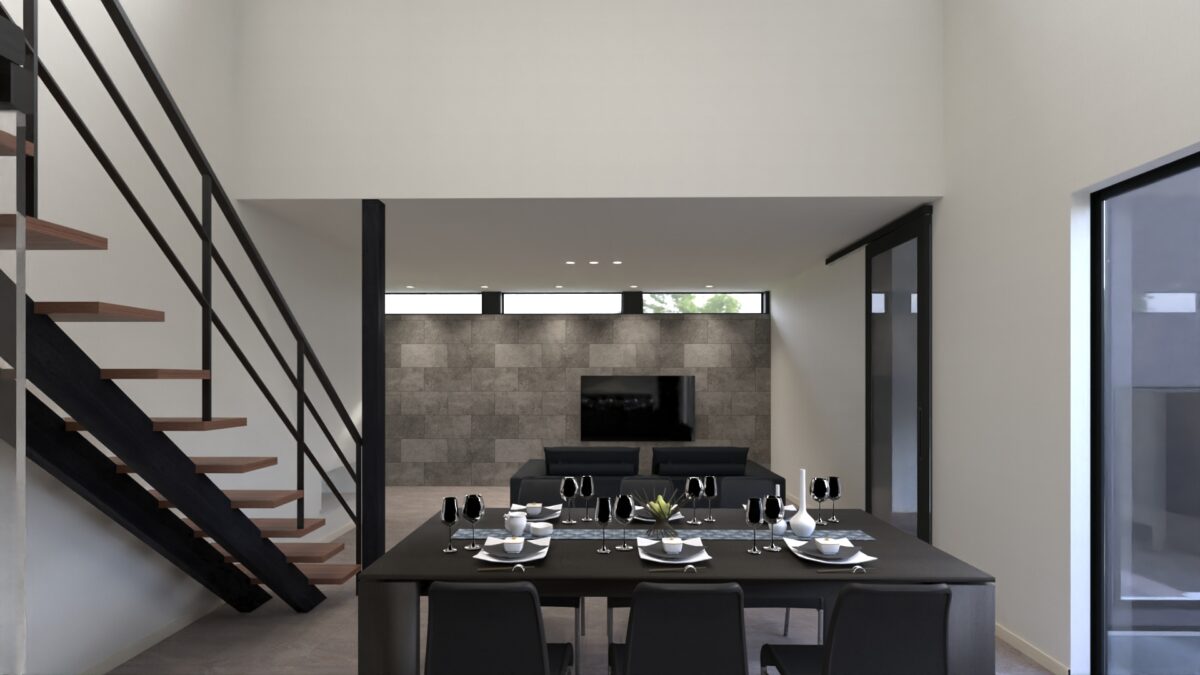 大きな吹き抜けで明るく開放的なLDK。スタディコーナーやゲストルーム、タイルデッキなどリビングを中心に、ご夫婦のプライベートスペースを持ちながら、ご家族はもちろんゲストとも楽しむ時間を満喫できます。水回りは並んで配置され、家事楽収納を介して移動距離を最小限にした家事がしやすい動線に。収納スペースも豊富で、スッキリ片付けやすく、おうち時間を豊かにしてくれる間取りです。
